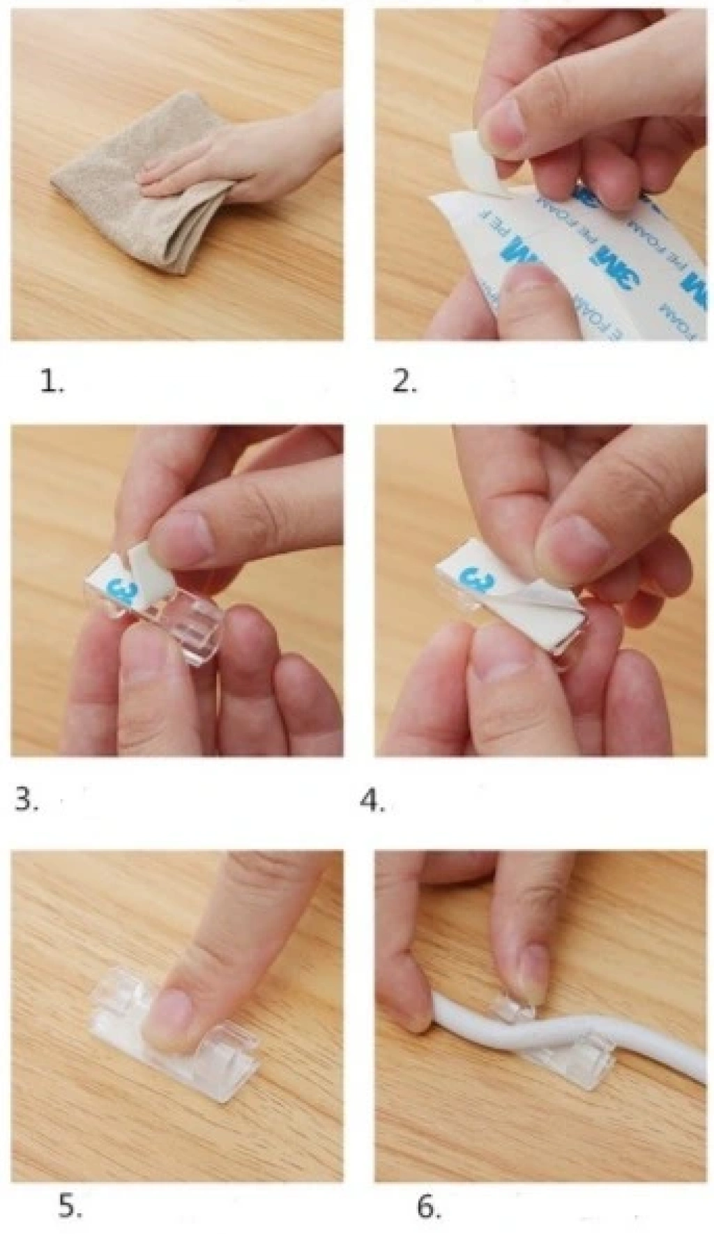 3. Yapışkan bandın arkasını çıkarın ve kablo klibine uygulayın.