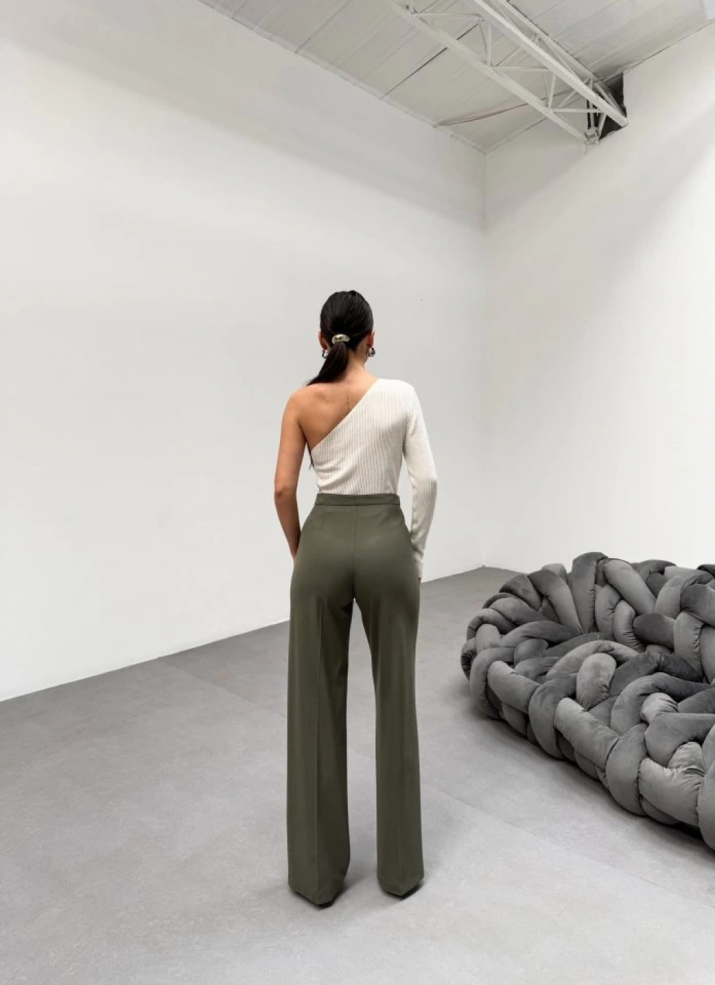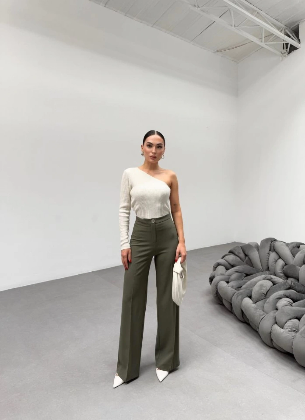 230 Gr Poly Viscose Lycra Metal Düğme Palazzo Pantolon