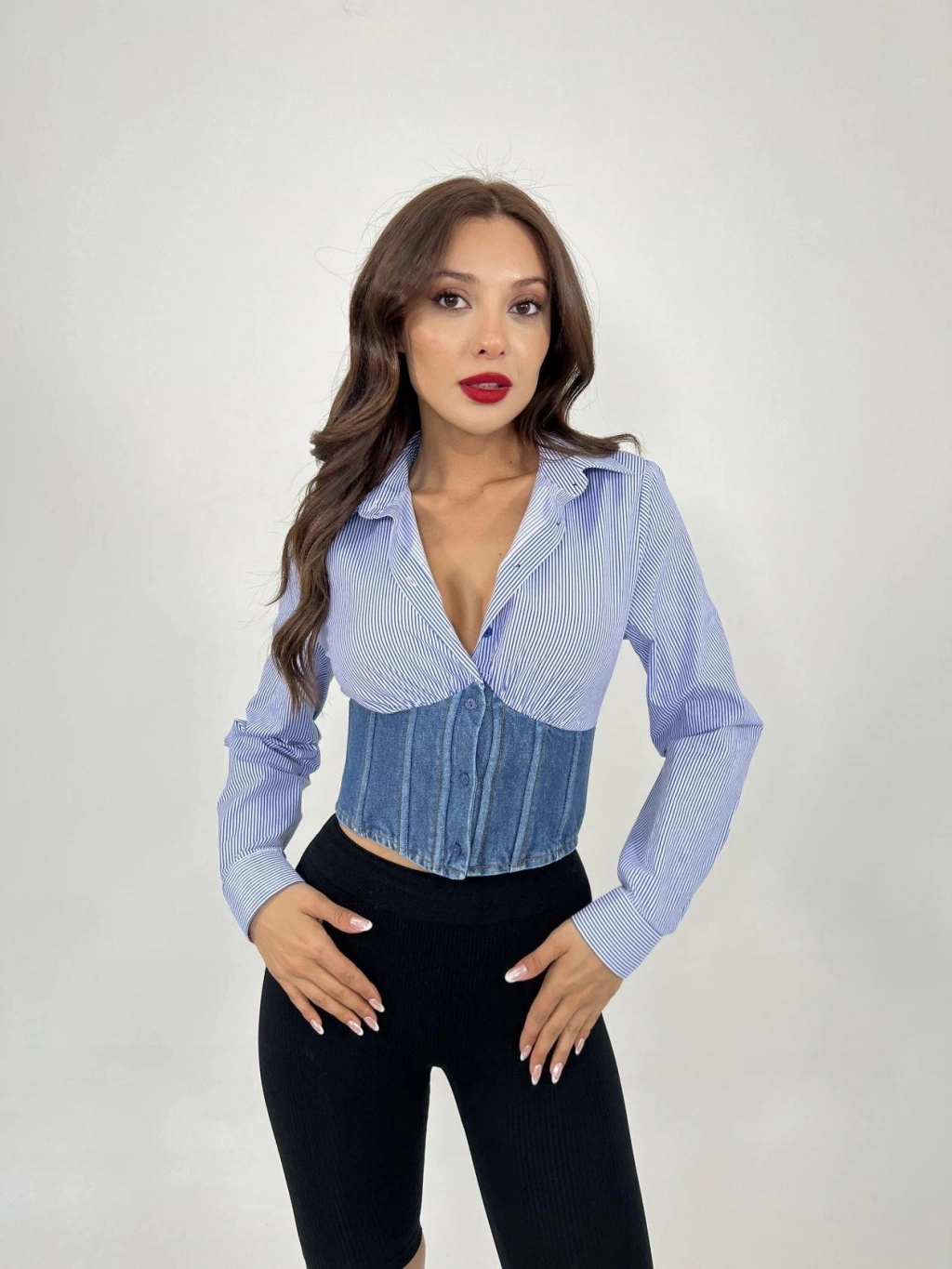 6963 GÖMLEK-MAVİ BEYAZ ÇİZGİLİ