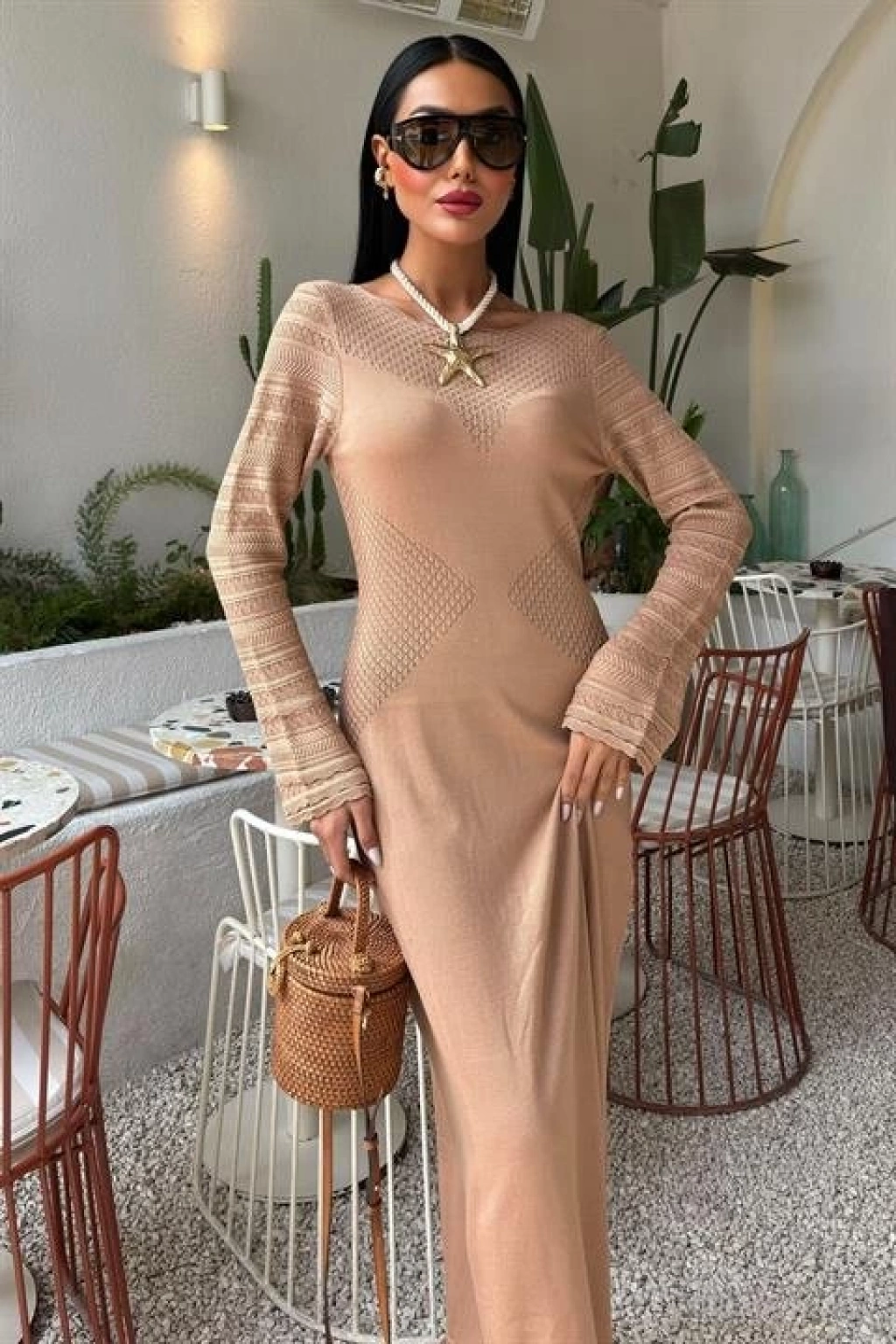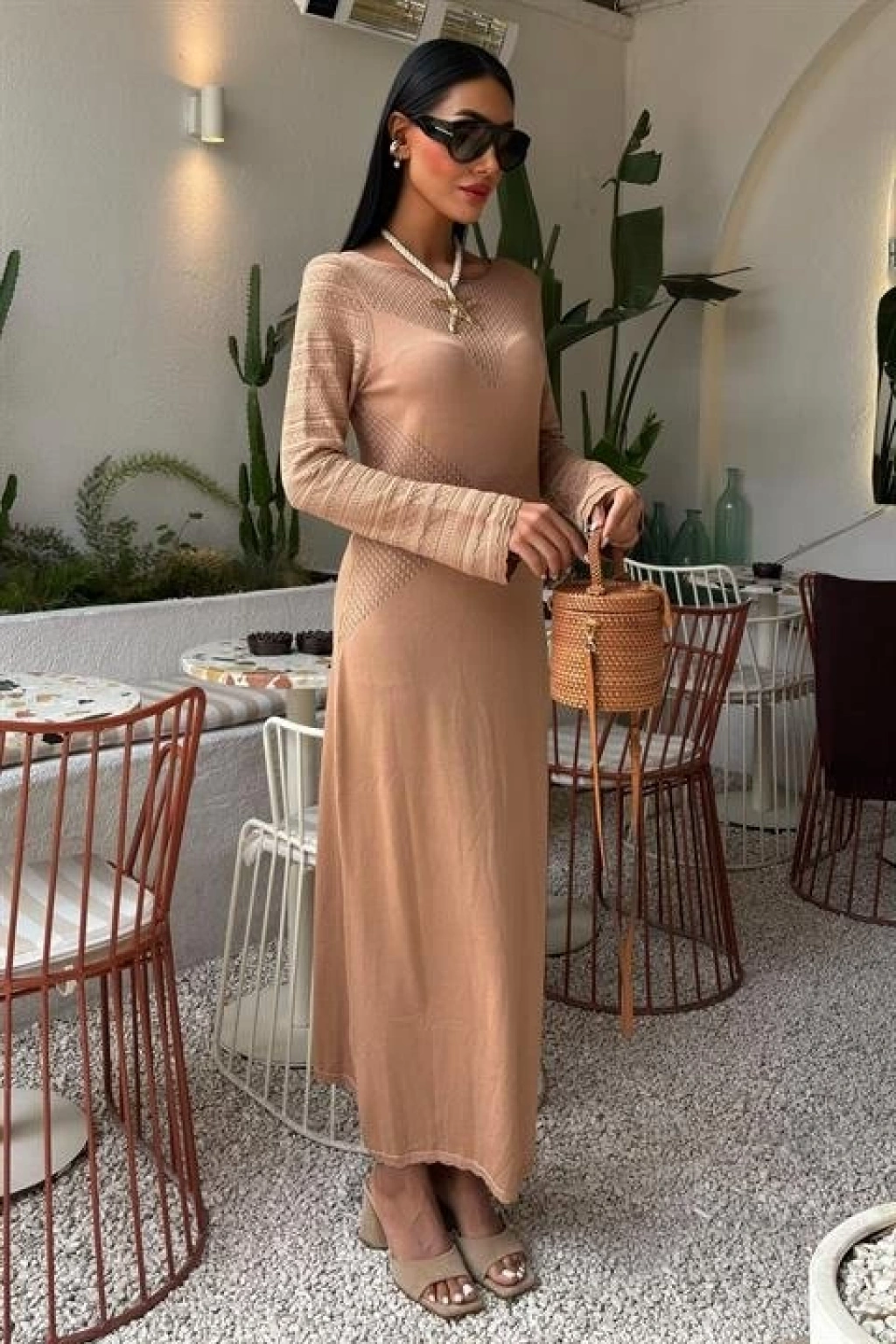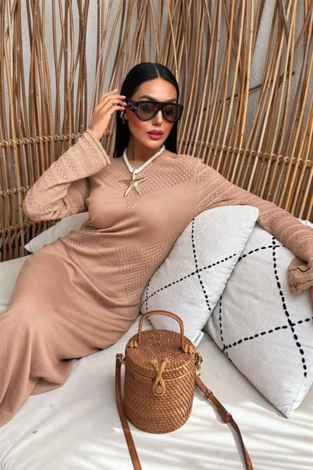 Ajur Detaylı Bisiklet Yaka Triko Elbise 2861