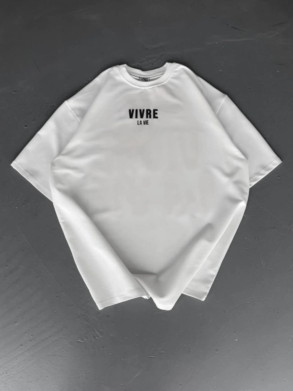 Baskılı Oversize Bisiklet Yaka T-shirt - Beyaz