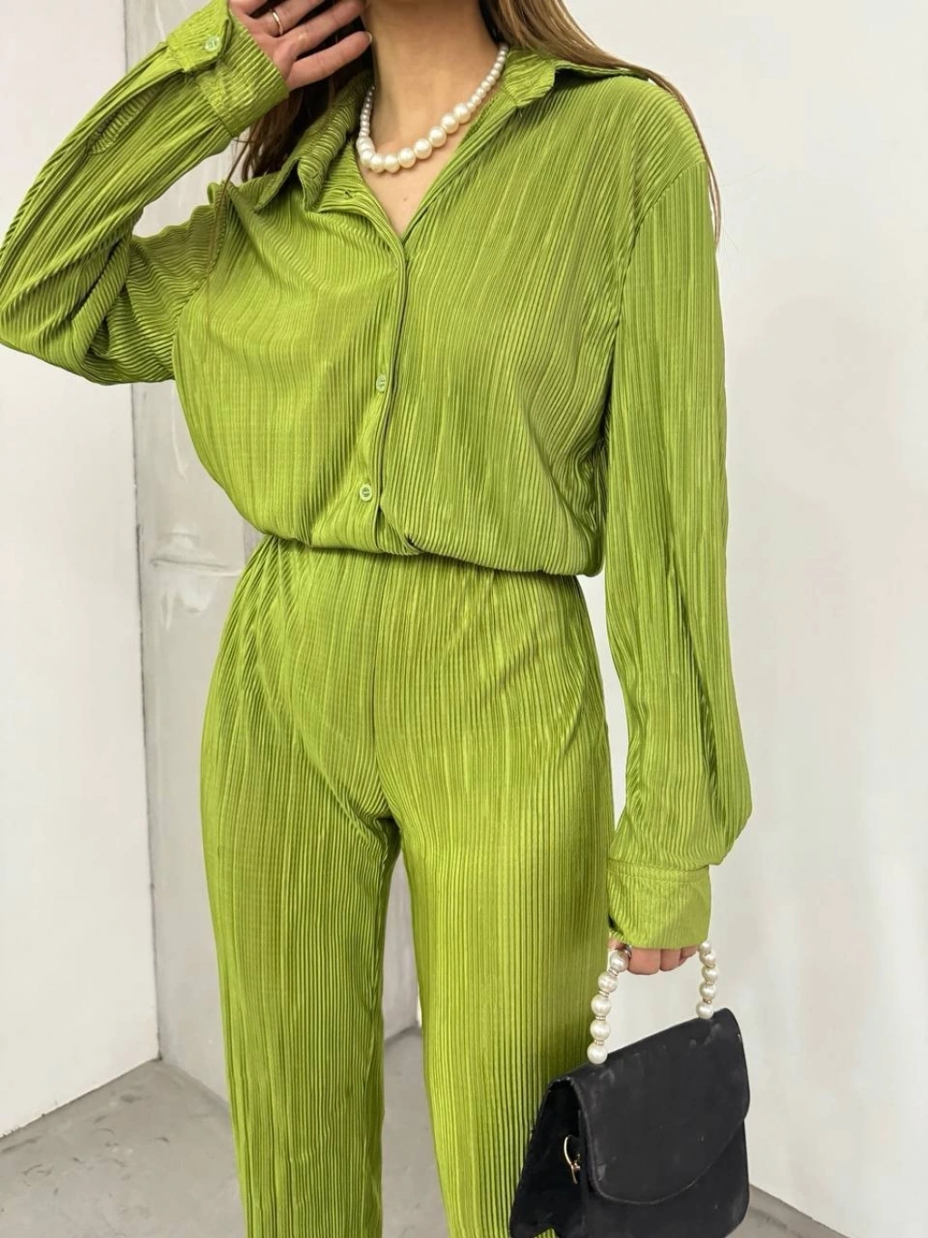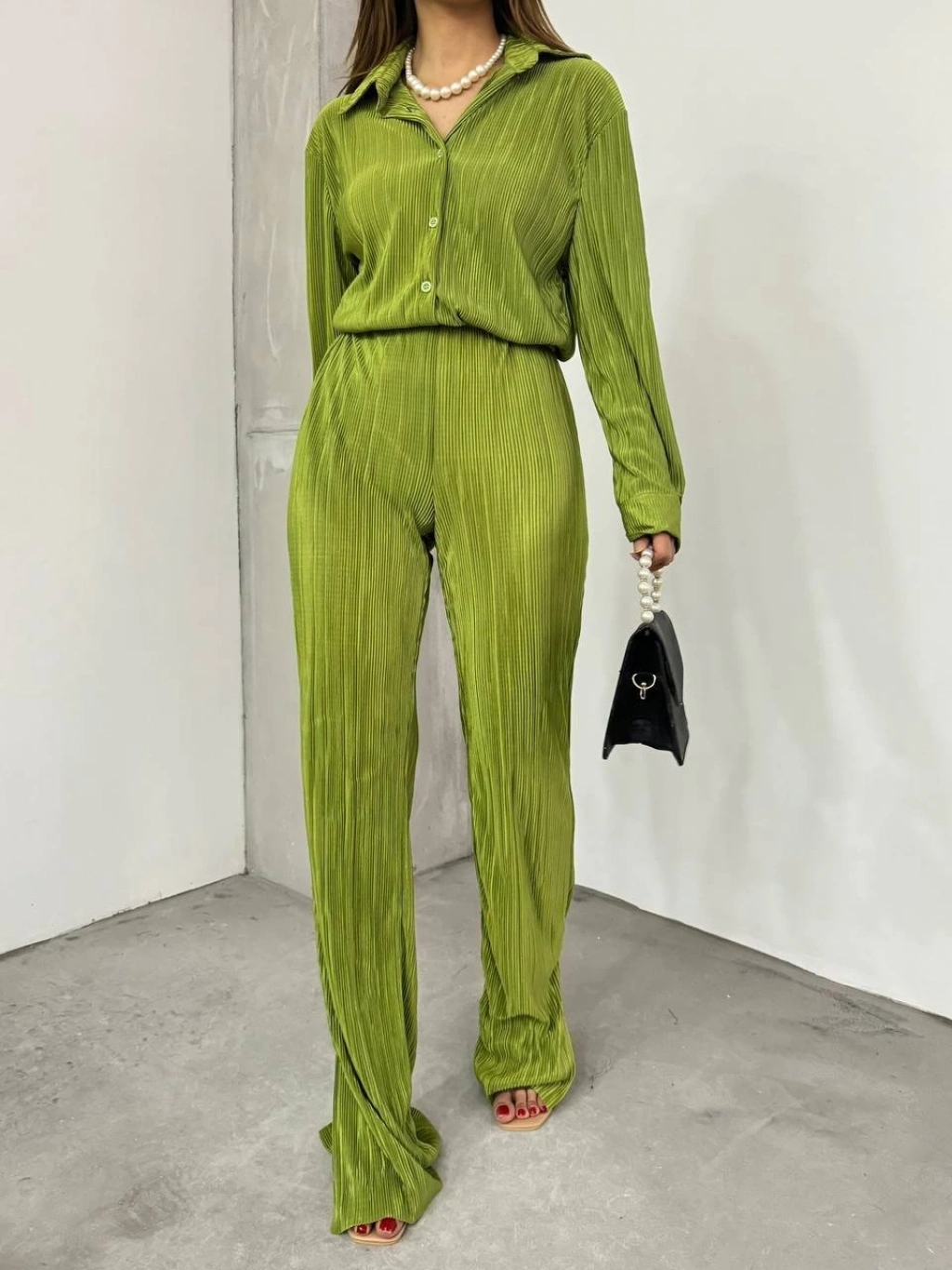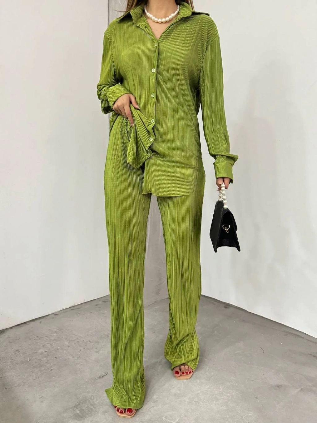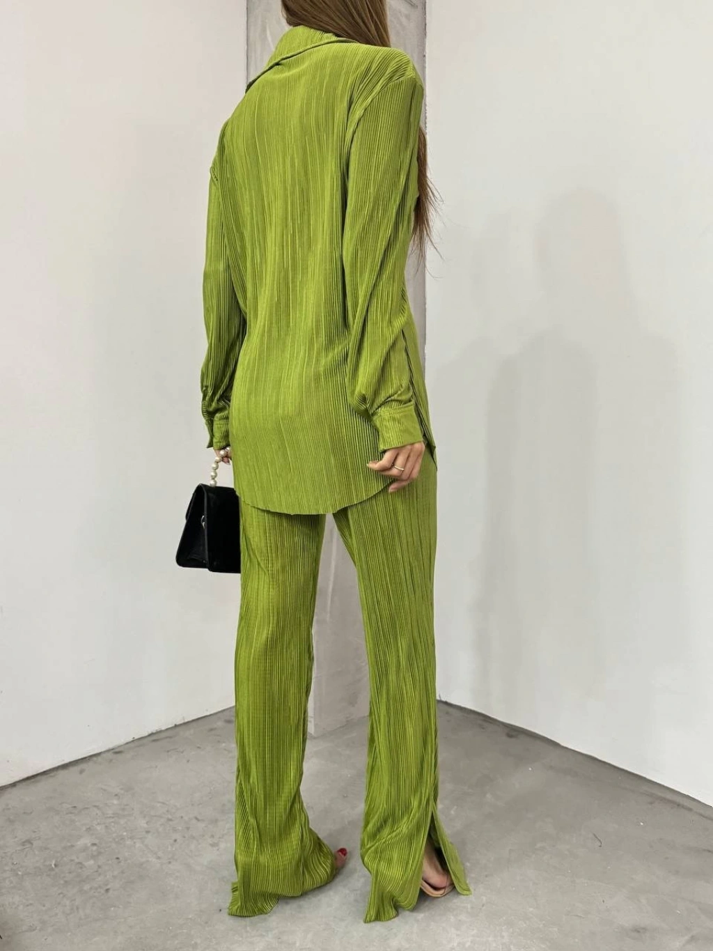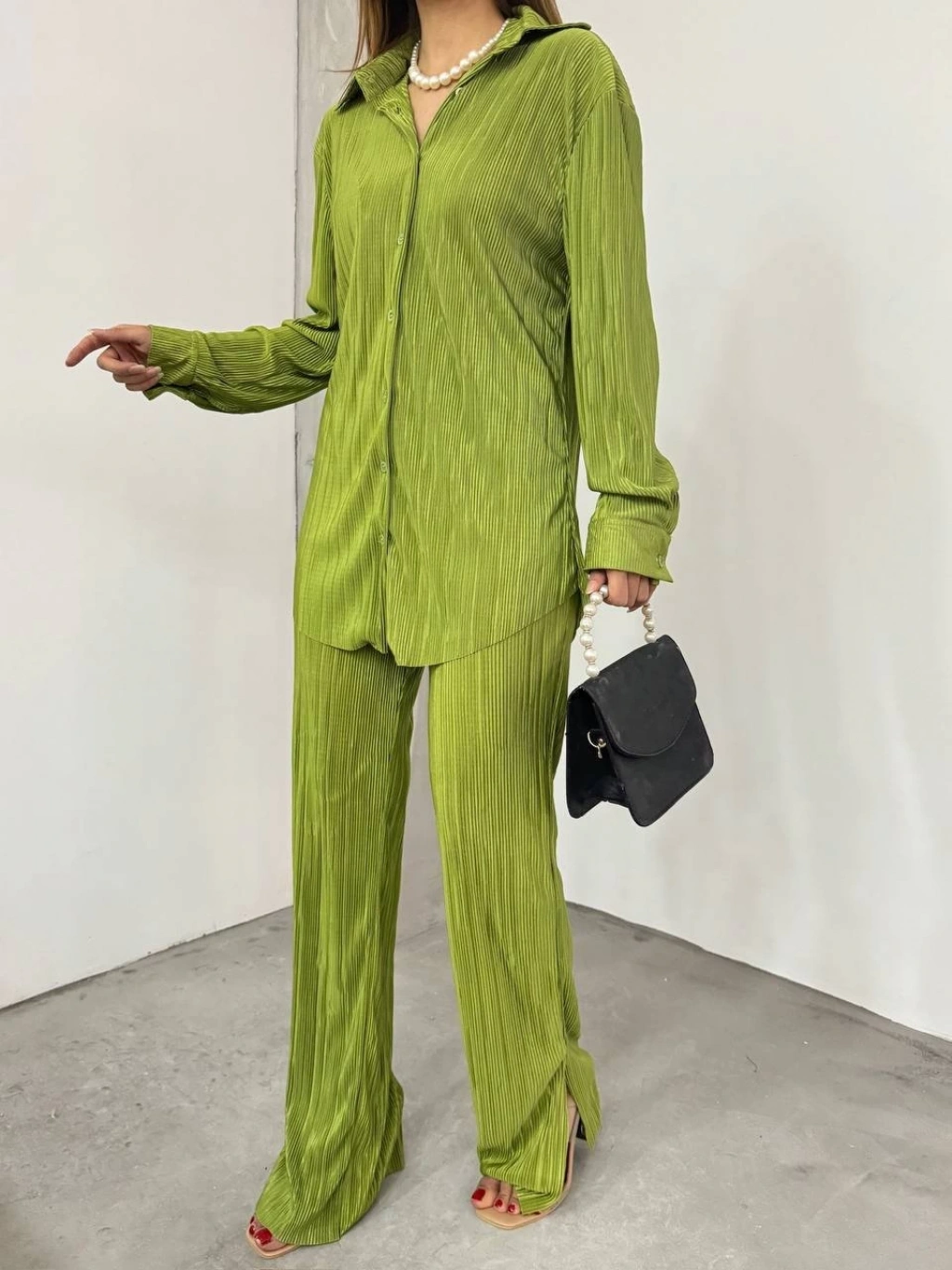 Bayrama Özel Kadın Düşük Omuz Salaş Gömlek Ve Yırtmaç Detay İspanyol Paça Pantolon