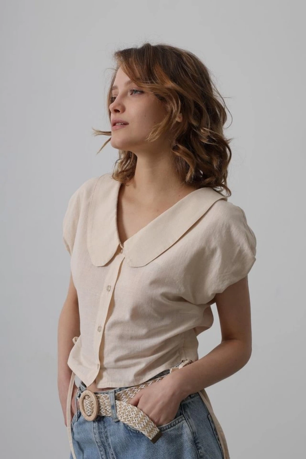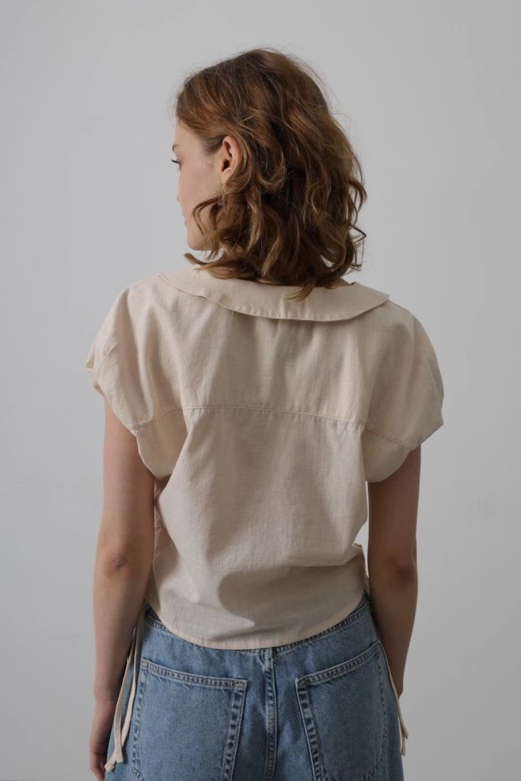 Bebe Yaka Yanları Bağlamalı Bluz - Taş