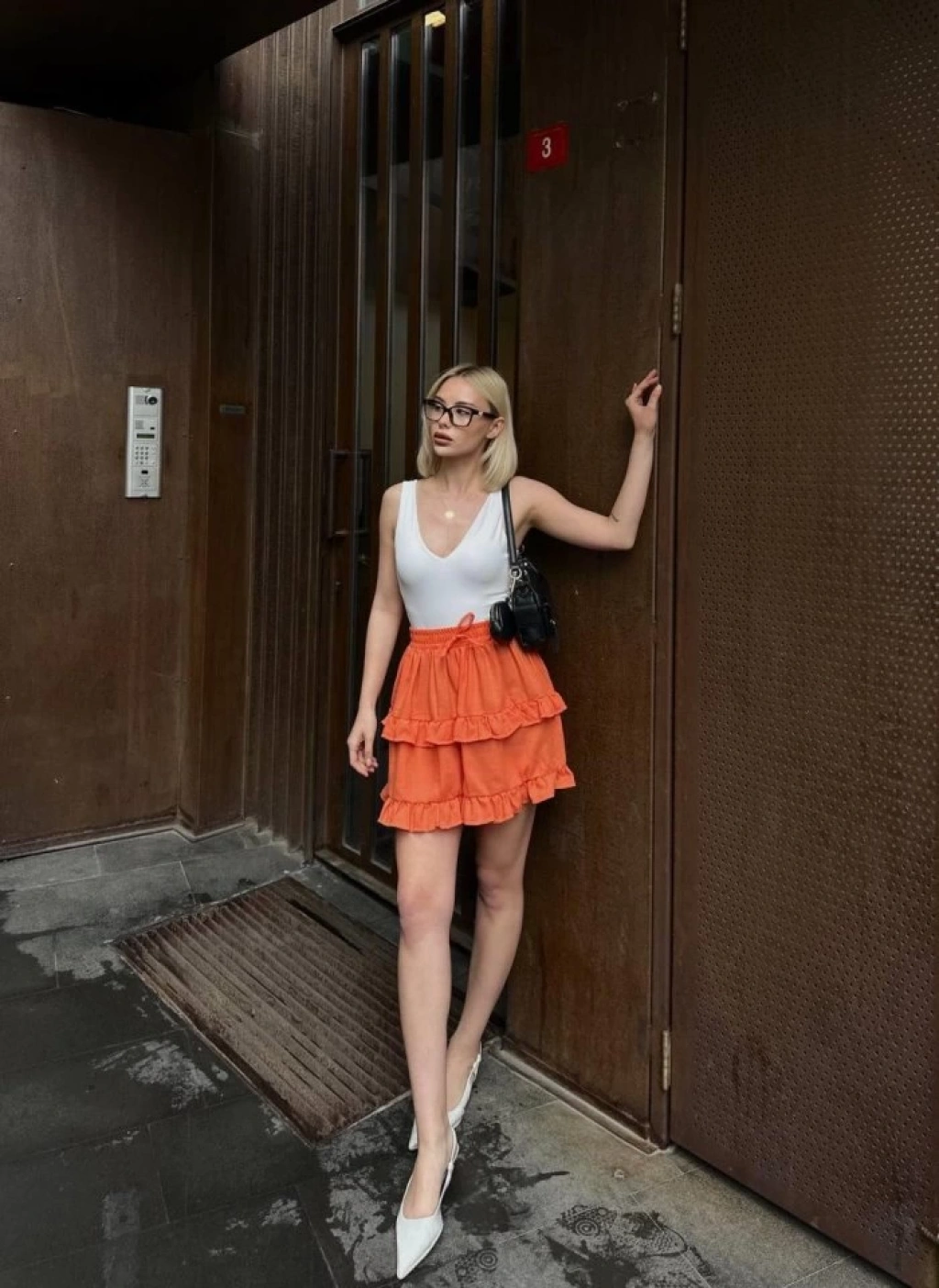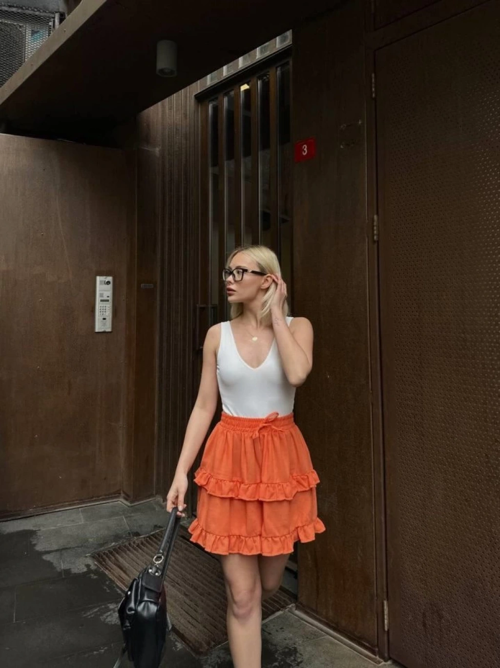 BEL LASTİKLİ KAT FIRFIR DETAYLI KISA ETEK - Turuncu