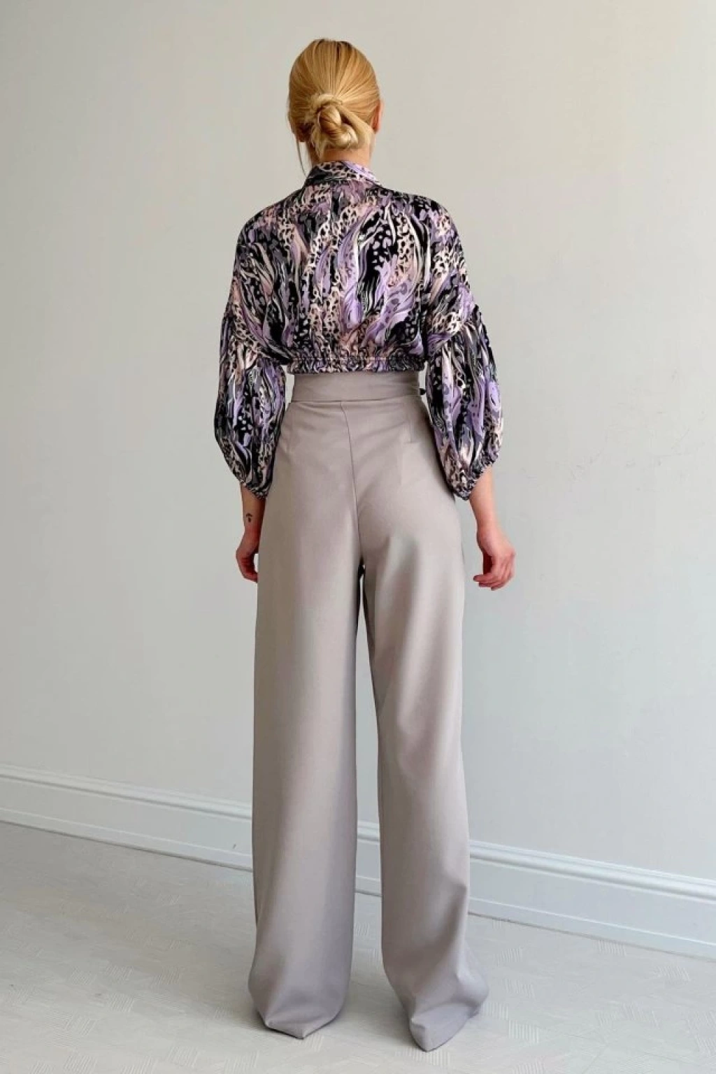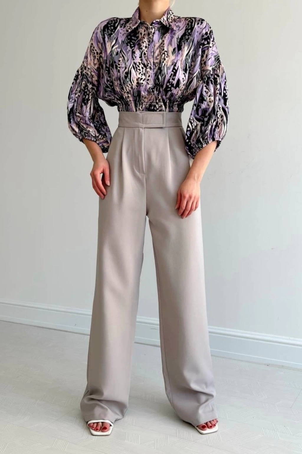 Beli Lastikli Saten Gömlek - Lila