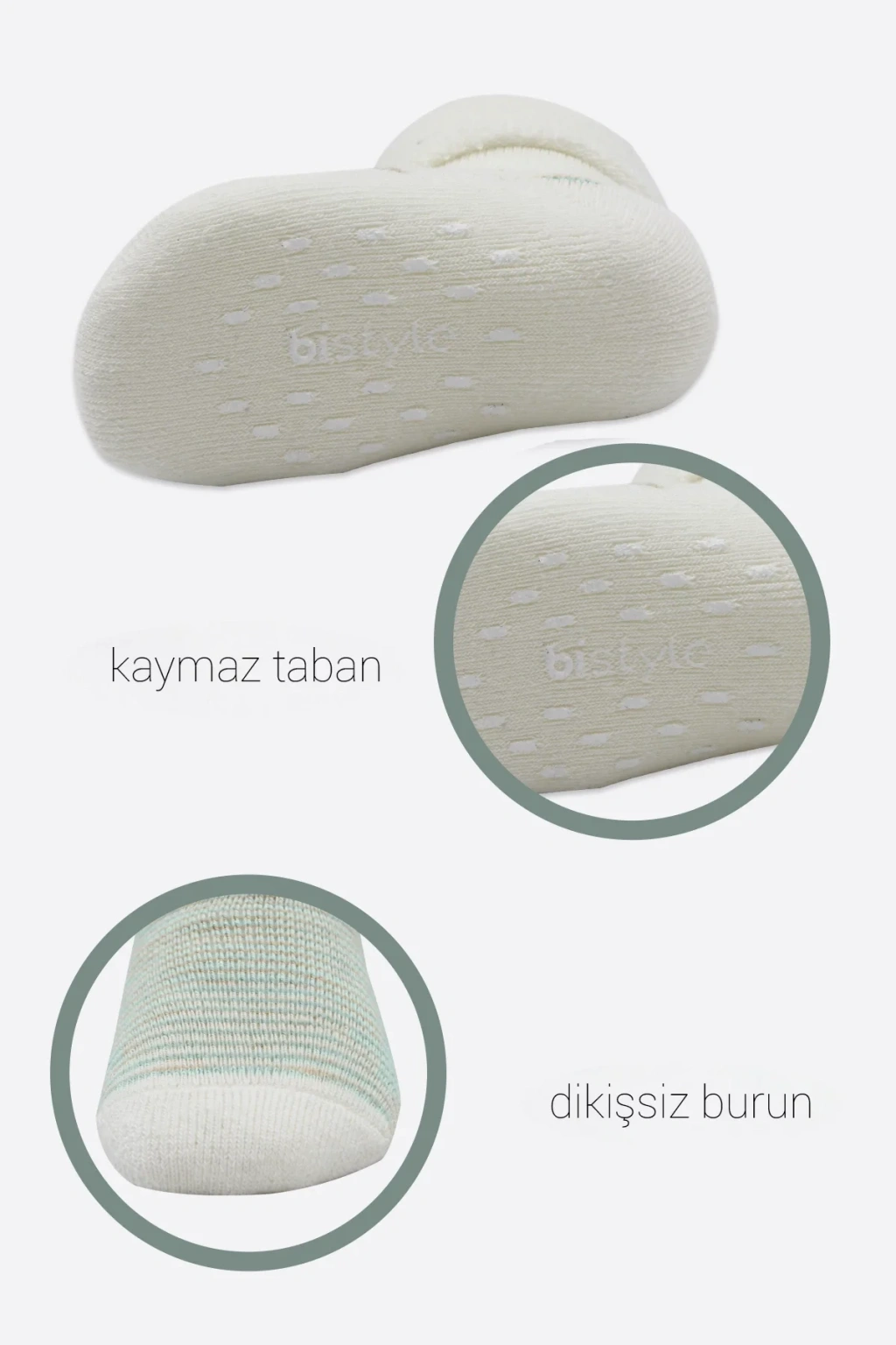 Bistyle 2'li Havlu Soket Kaymaz Çorap 10504 Nil Ekru