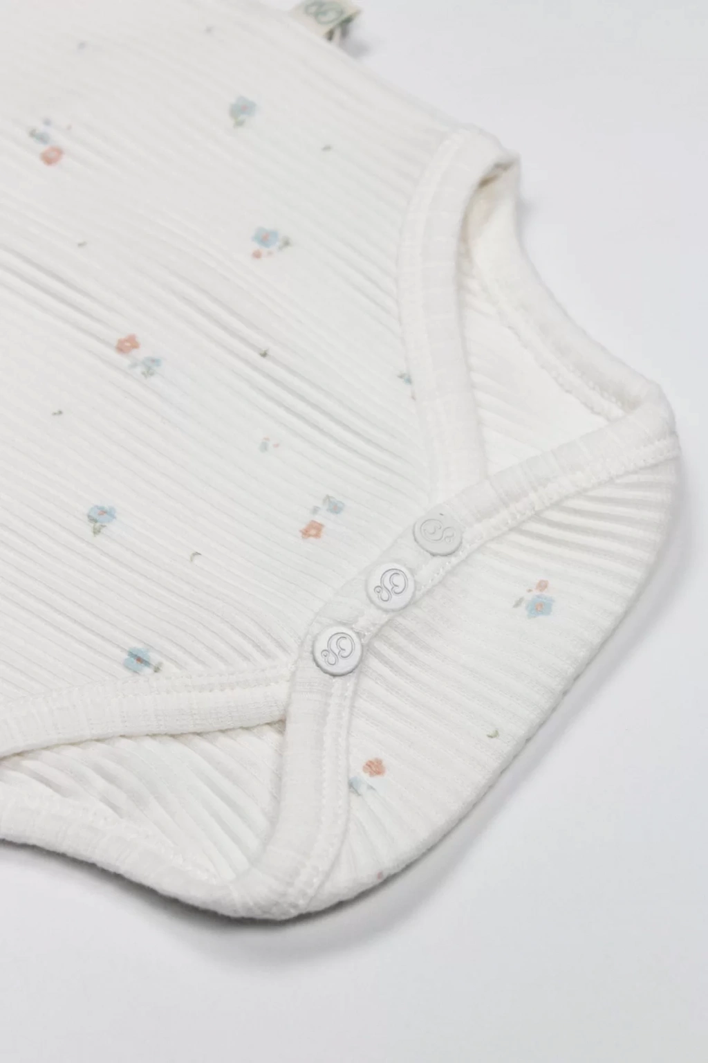 Flying Bloom White Yarım Kol 2'li Body 17118 Ekru Gül Kurusu