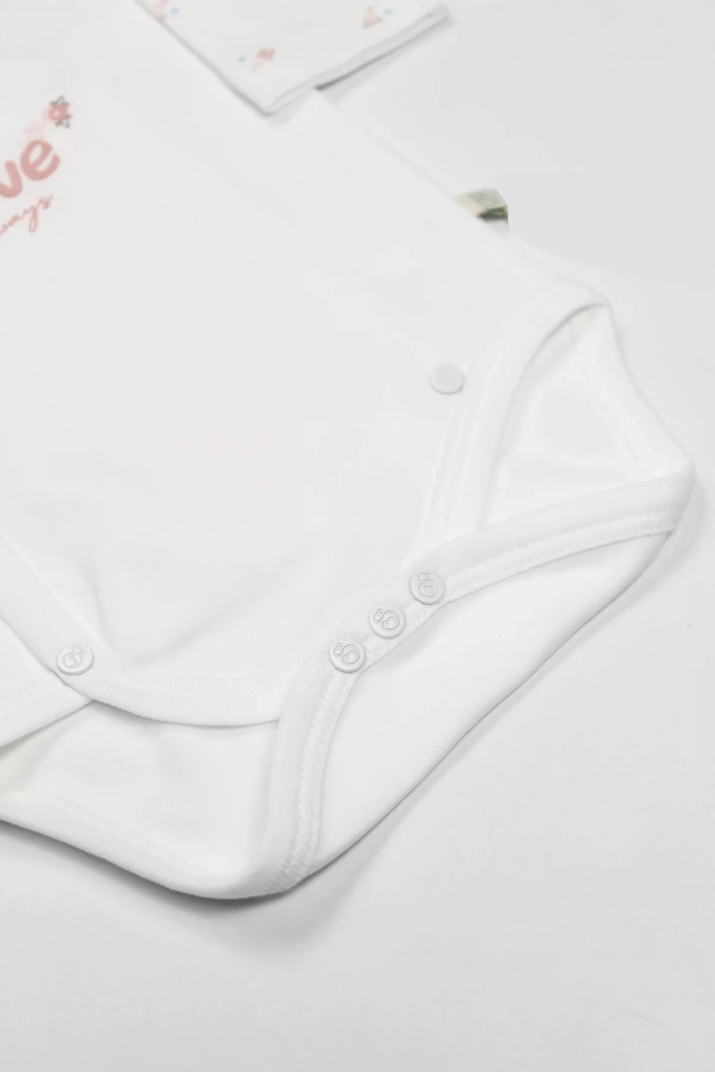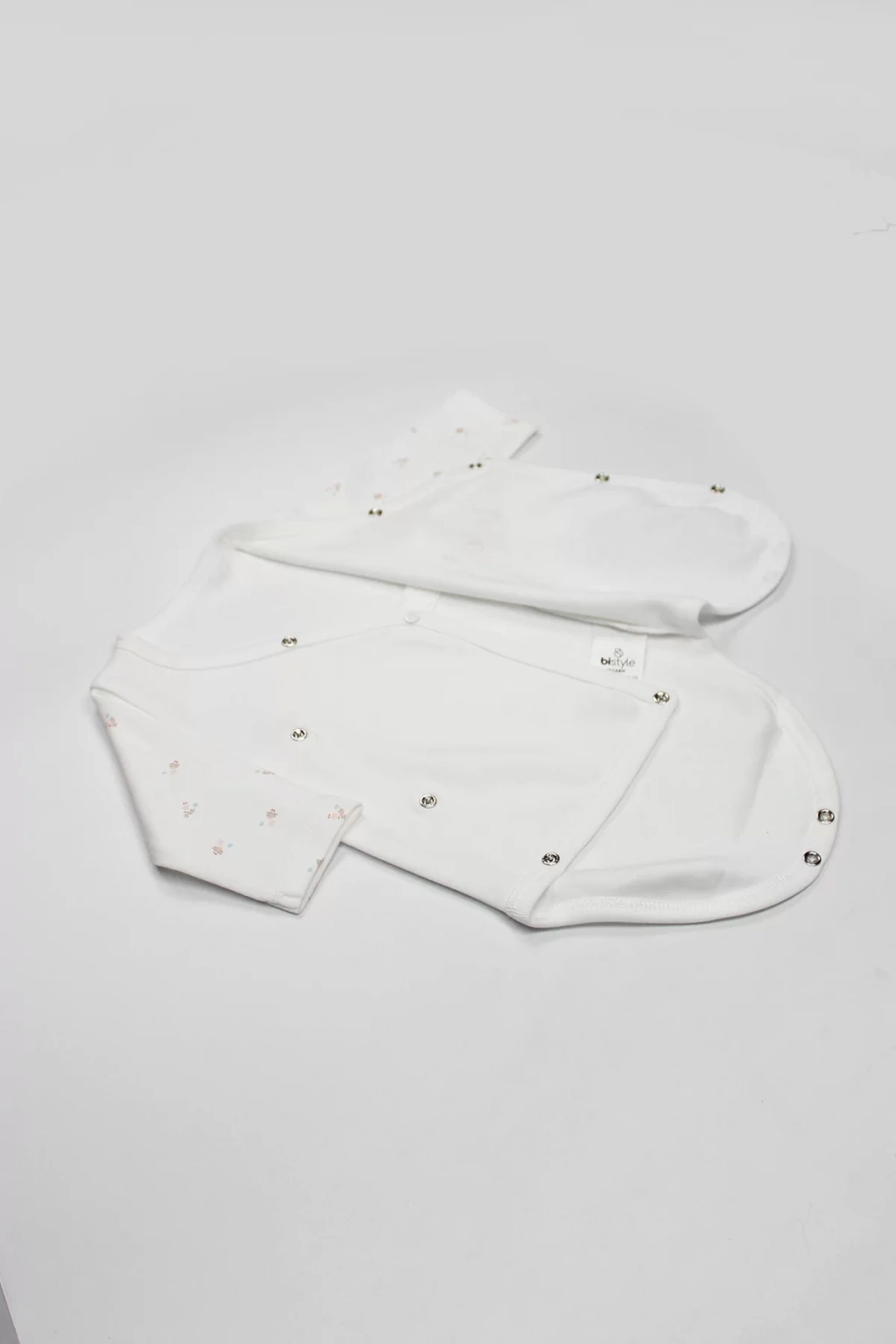 Bistyle Flying Bloom White Yarım Kol 2'li Body 17118 Ekru Gül Kurusu