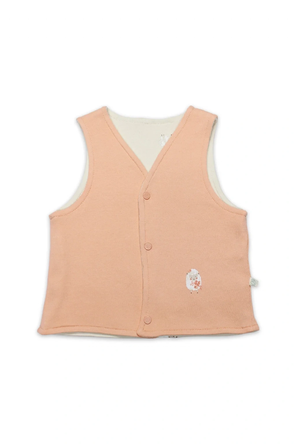 Bistyle Grow İn Love Çift Taraflı Bebe Yelek 18102 Pembe Ekru