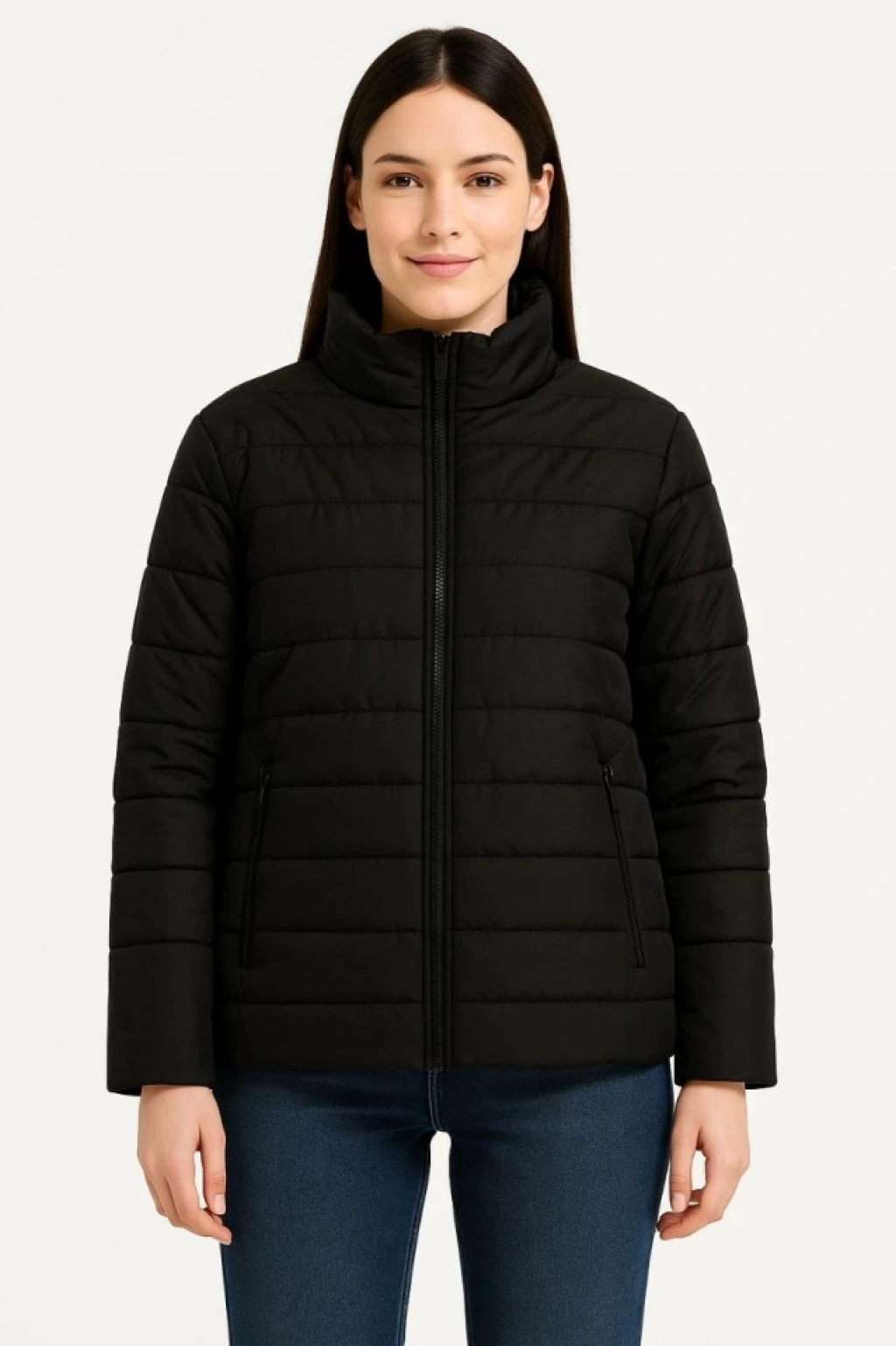 Bomber Mont Ceket – Su İtici Kumaş, Kapitone Astarlı, Fermuarlı, Kışlık - Siyah