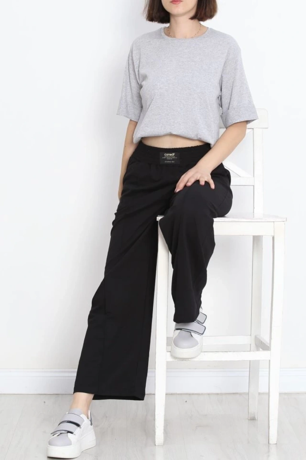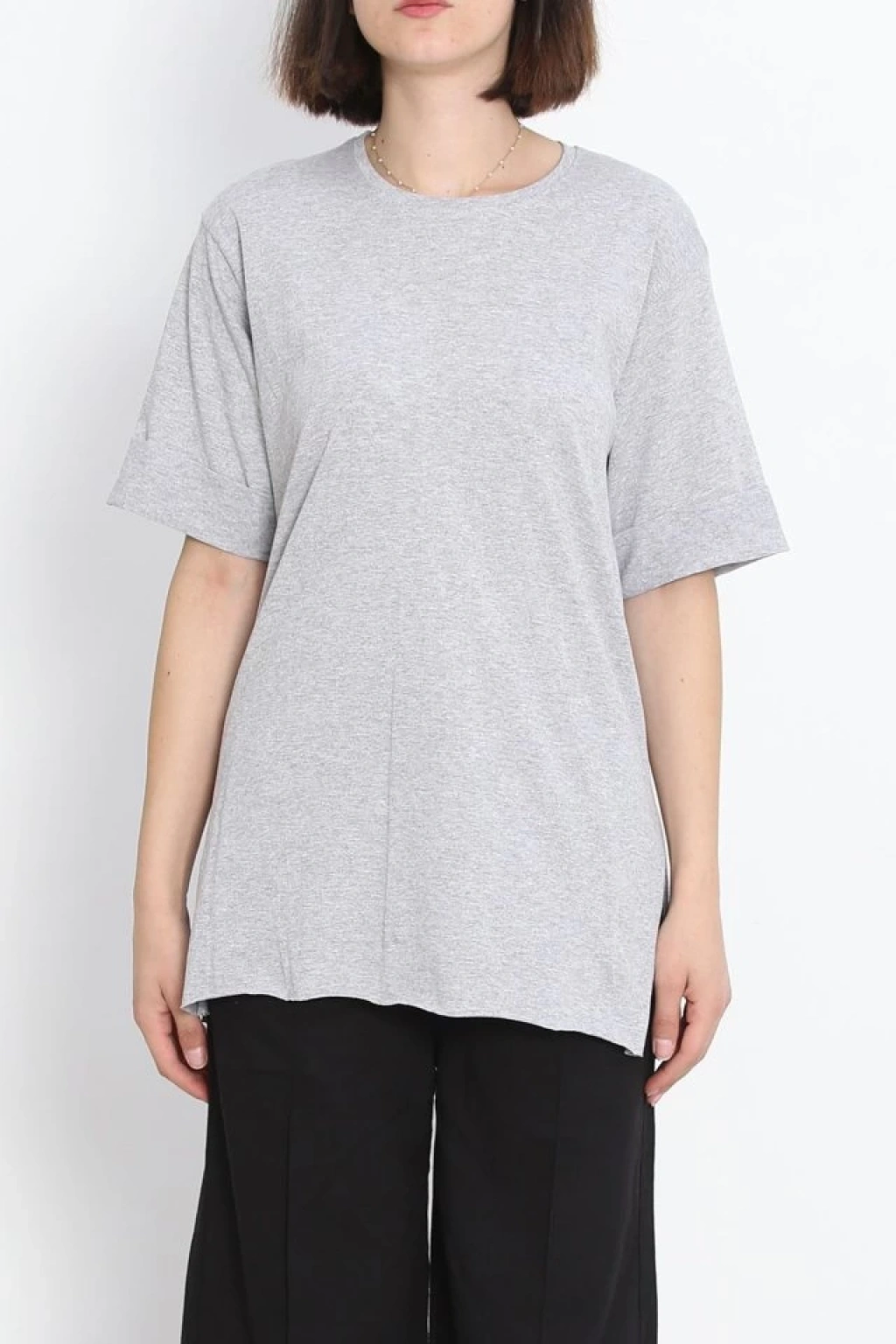 Büyük Beden Duble Kol Tişört Gri