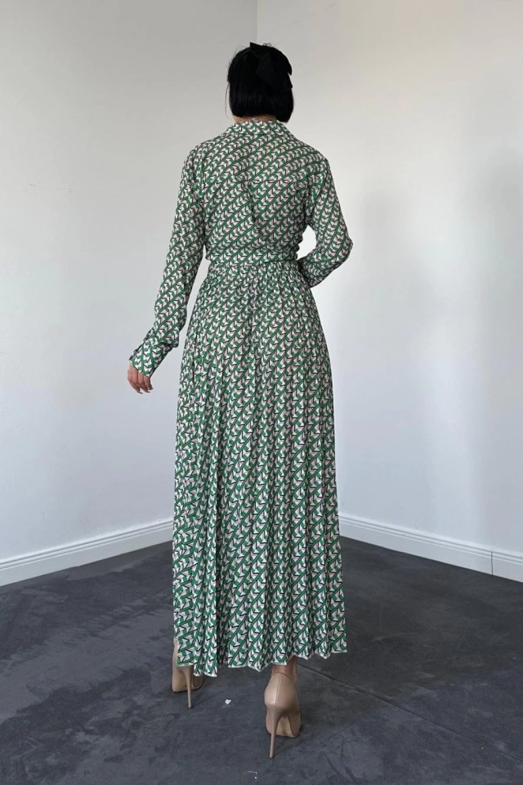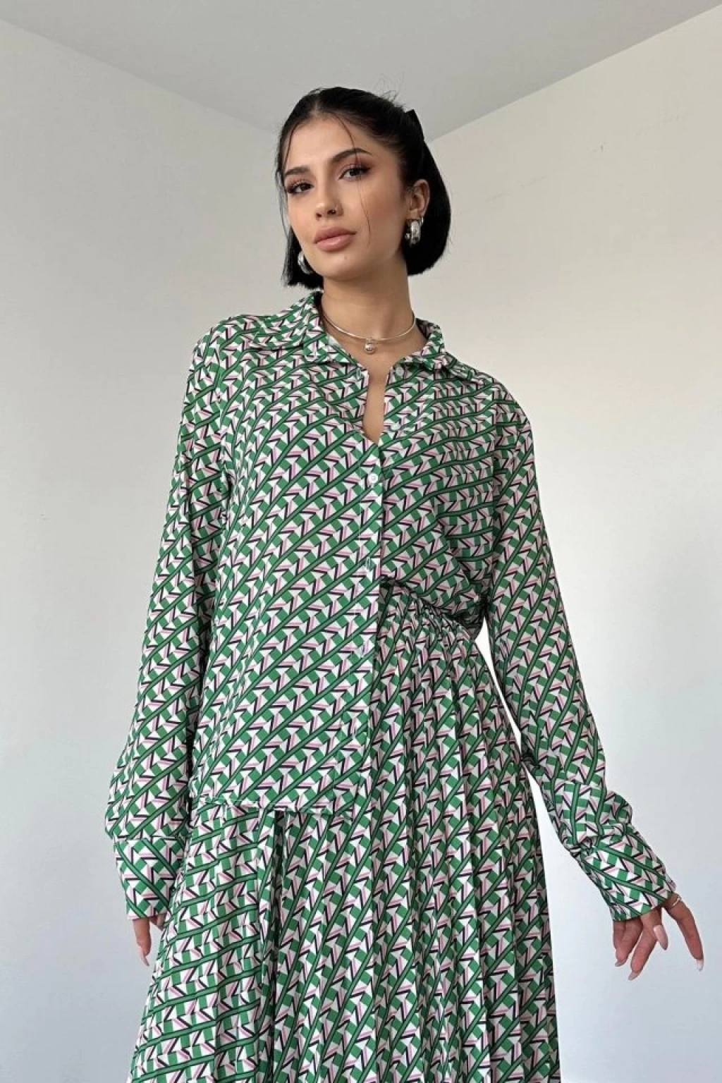 Desenli Viskon Gömlek Ve Etek Takım - Yeşil
