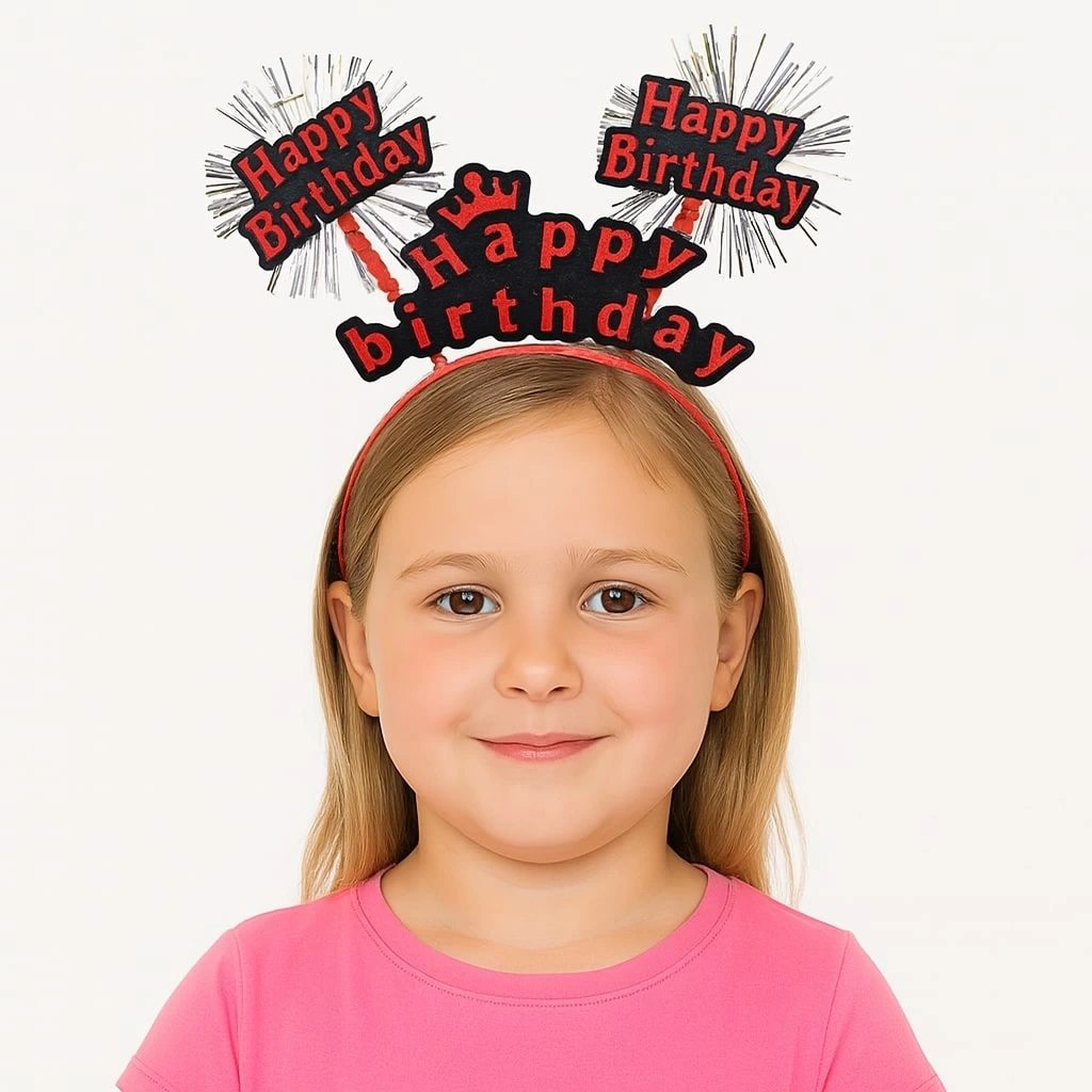 Doğum günü partilerini renklendirecek bu KIRMIZI Happy Birthday yazılı taç, çocukların kutlamalarında eğlenceli ve şık bir görünüm sunar. Parlak kırmızı detayları, ışıldayan yıldız patlaması figürleri ve esnek yapısı ile hem kız hem de erkek çocuklar için uygundur.