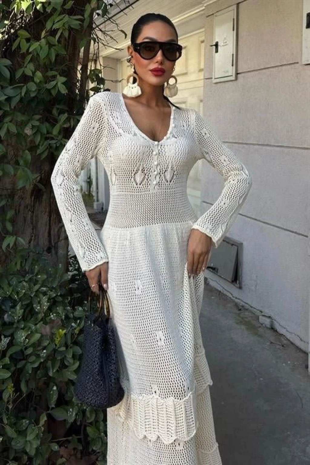 Düğme Detaylı Ve Kat Etekli Etnik Elbise 2859