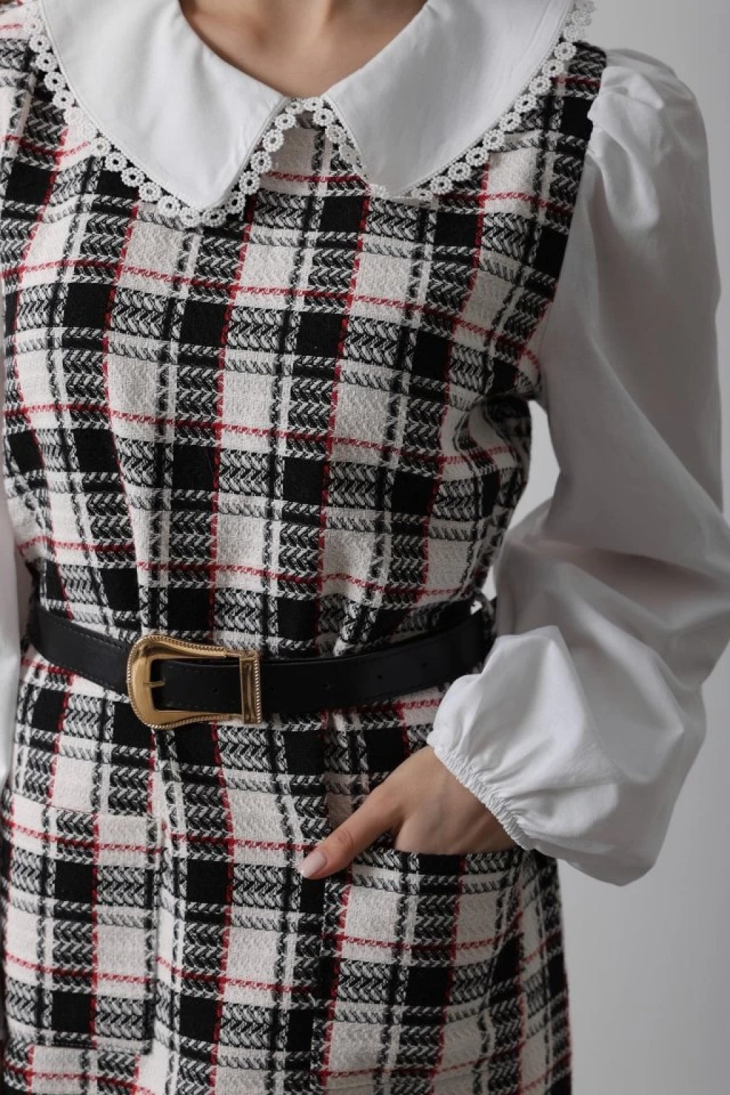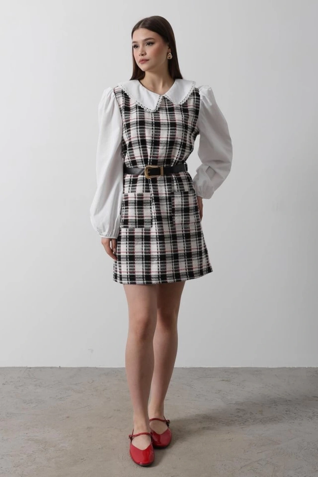 Ekoseli Gömlek Detaylı Elbise - Siyah