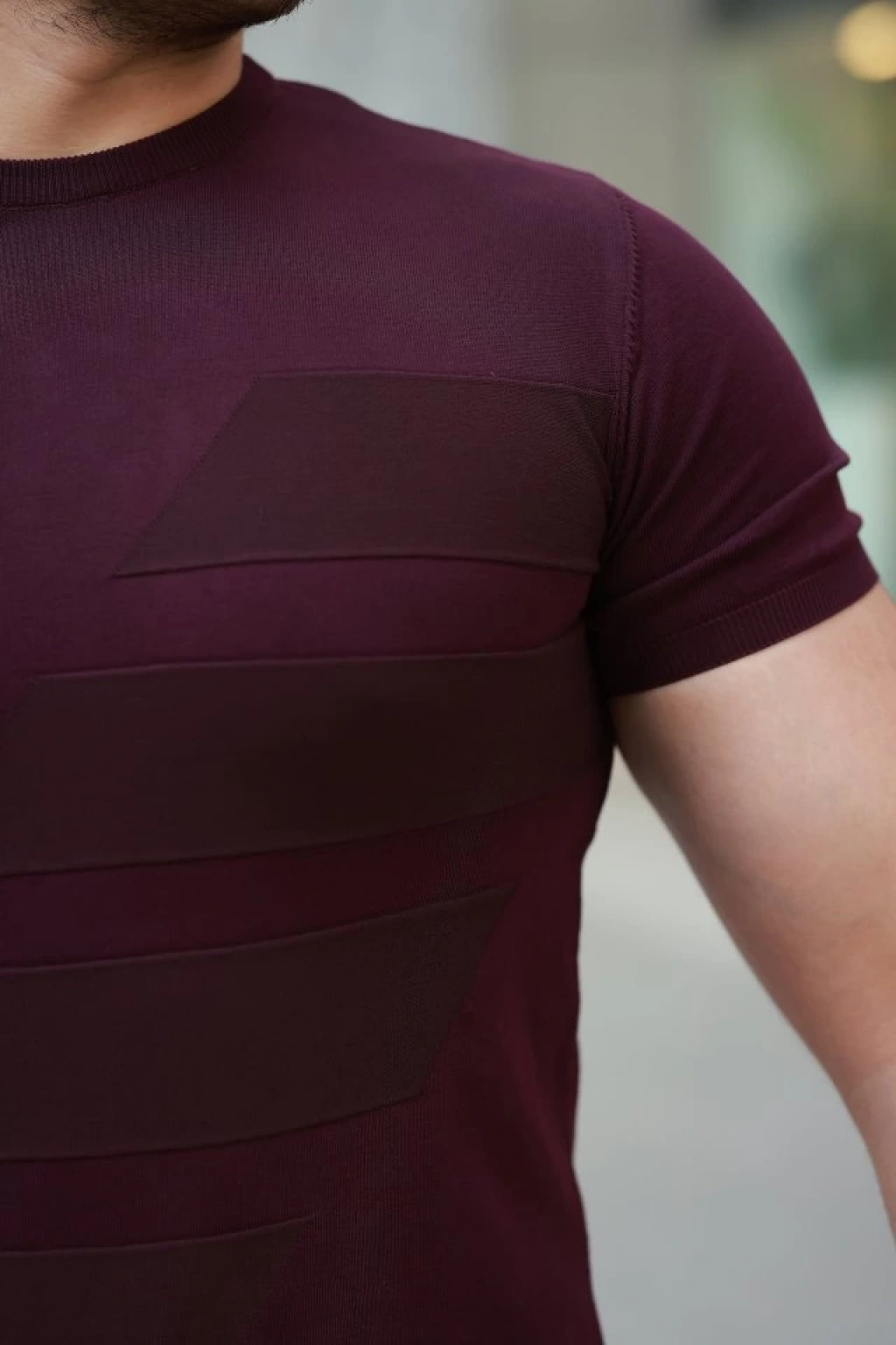 Erkek Fermuar Yakalı Kolları Desenli Kısa Kollu Tişört