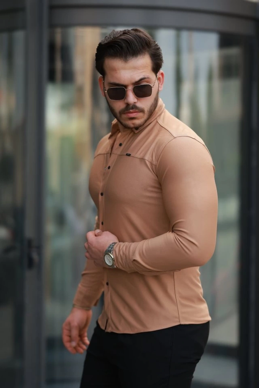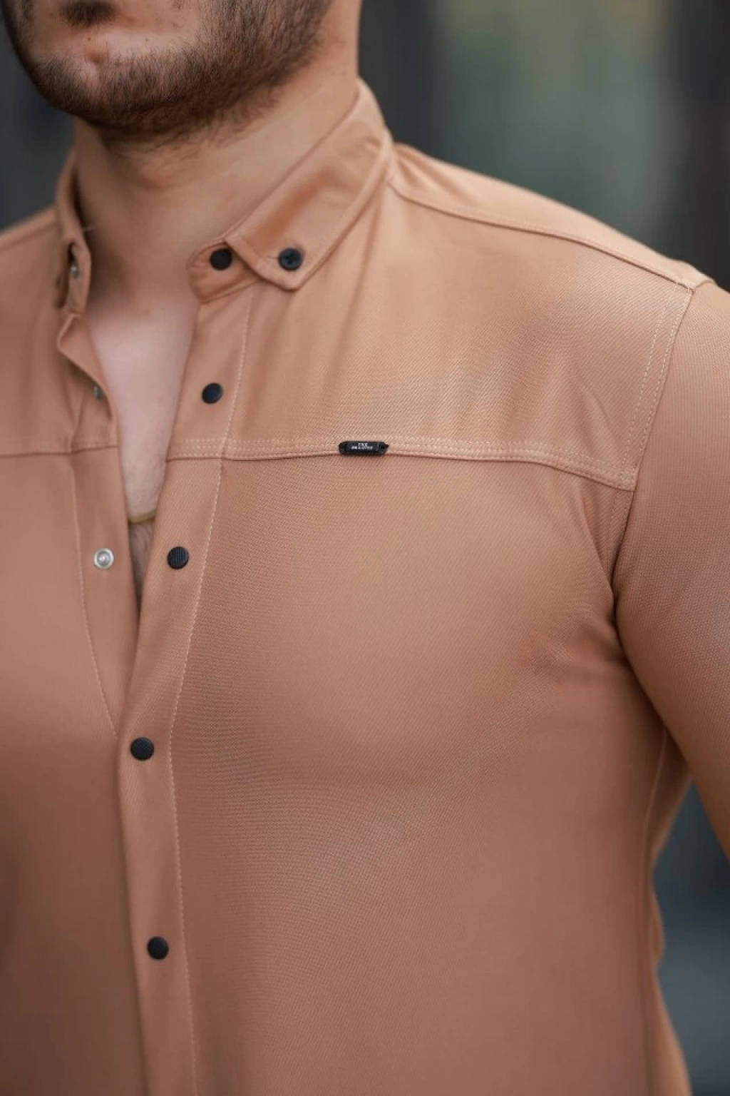 Erkek çıtçıt Düğmeli Dikiş Detaylı Uzun Kollu Gömlek