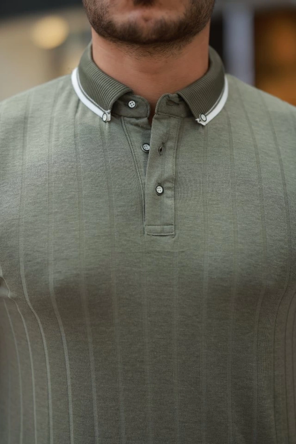 Erkek Düğme Yakalı Jakar Kumaş Kısa Kollu Tişört