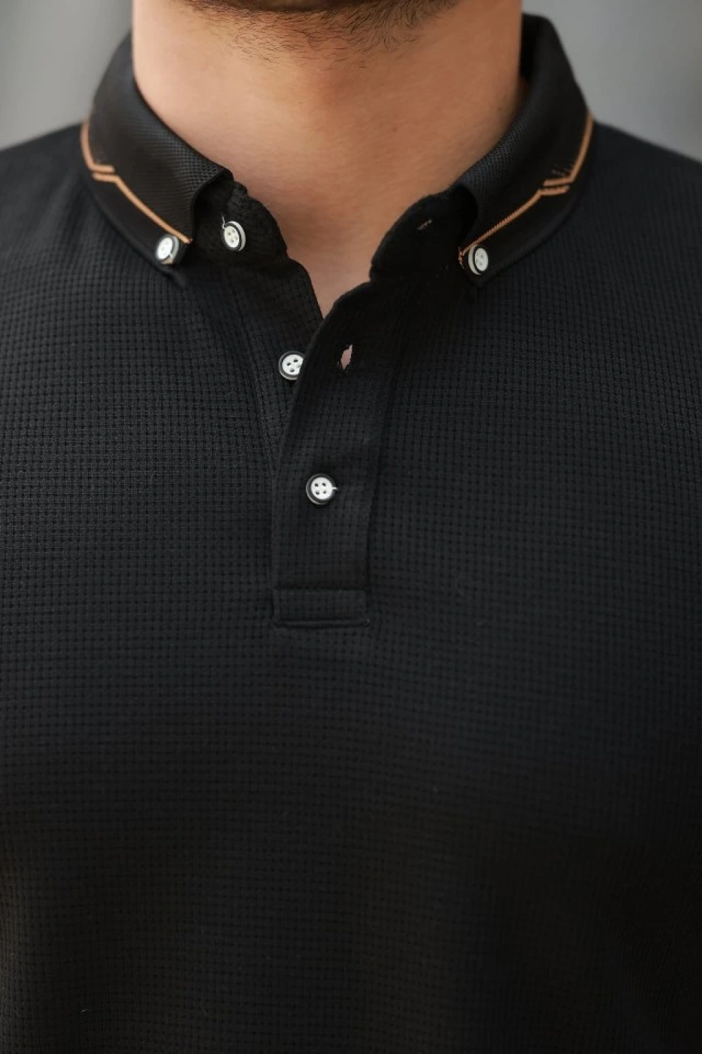 Erkek Düğmeli Yaka Waffle Kumaş Kısa Kollu Tişört