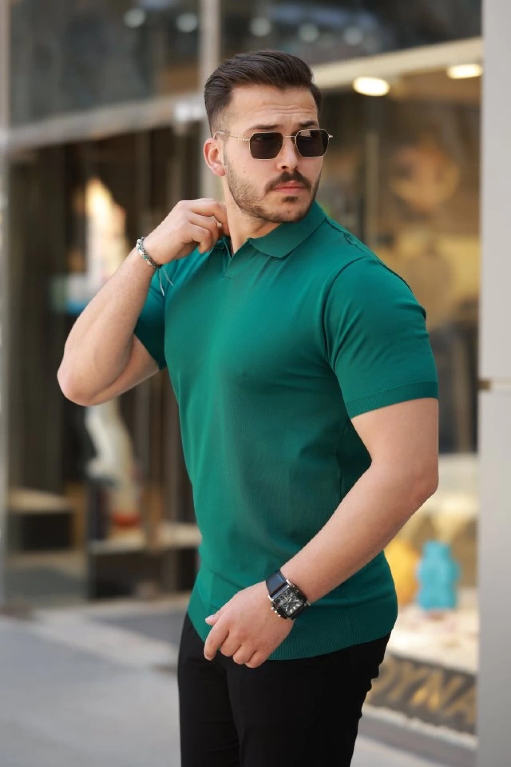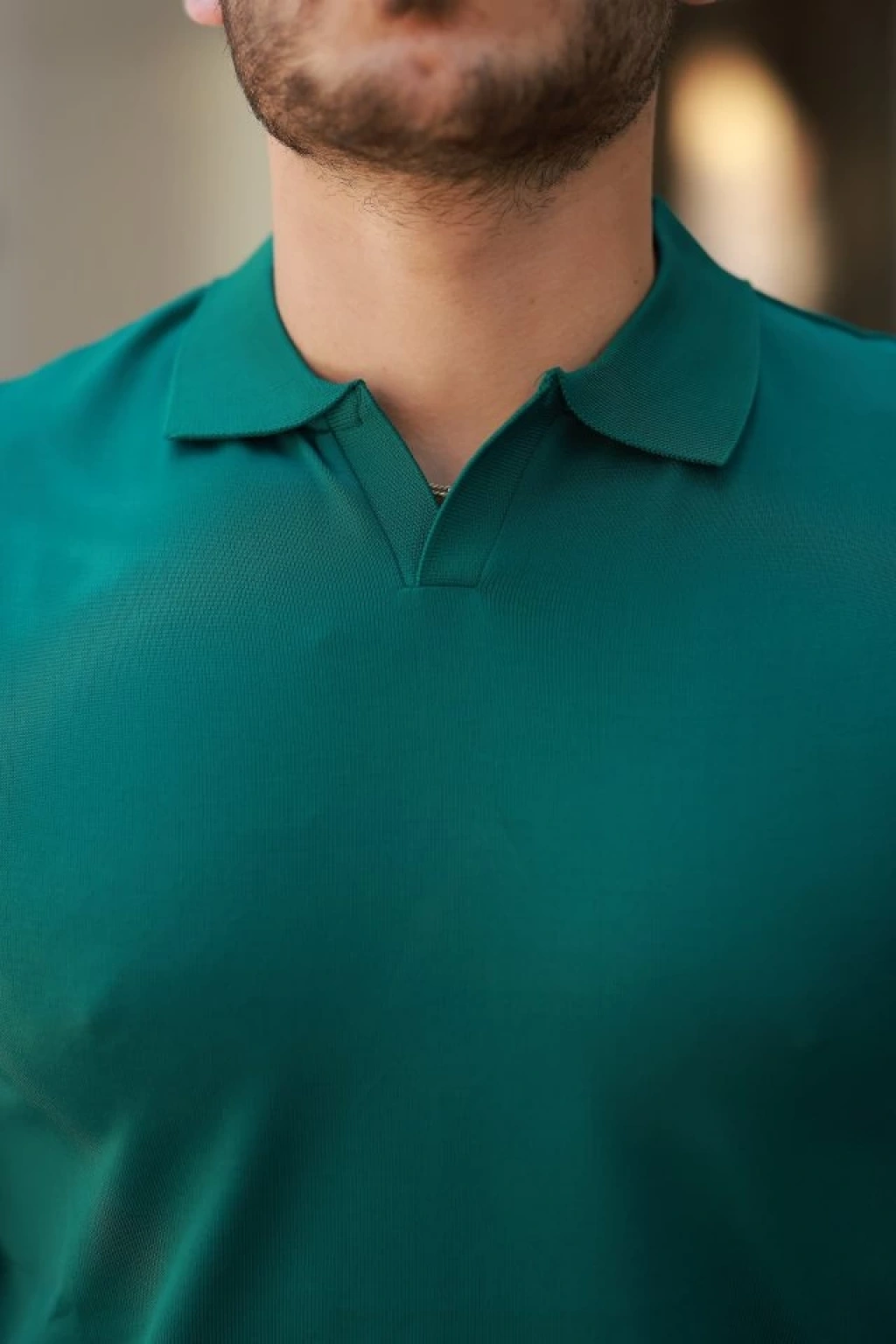 Erkek Kısa Kollu Yakalı Yakadan Düğmeli Triko Bluz