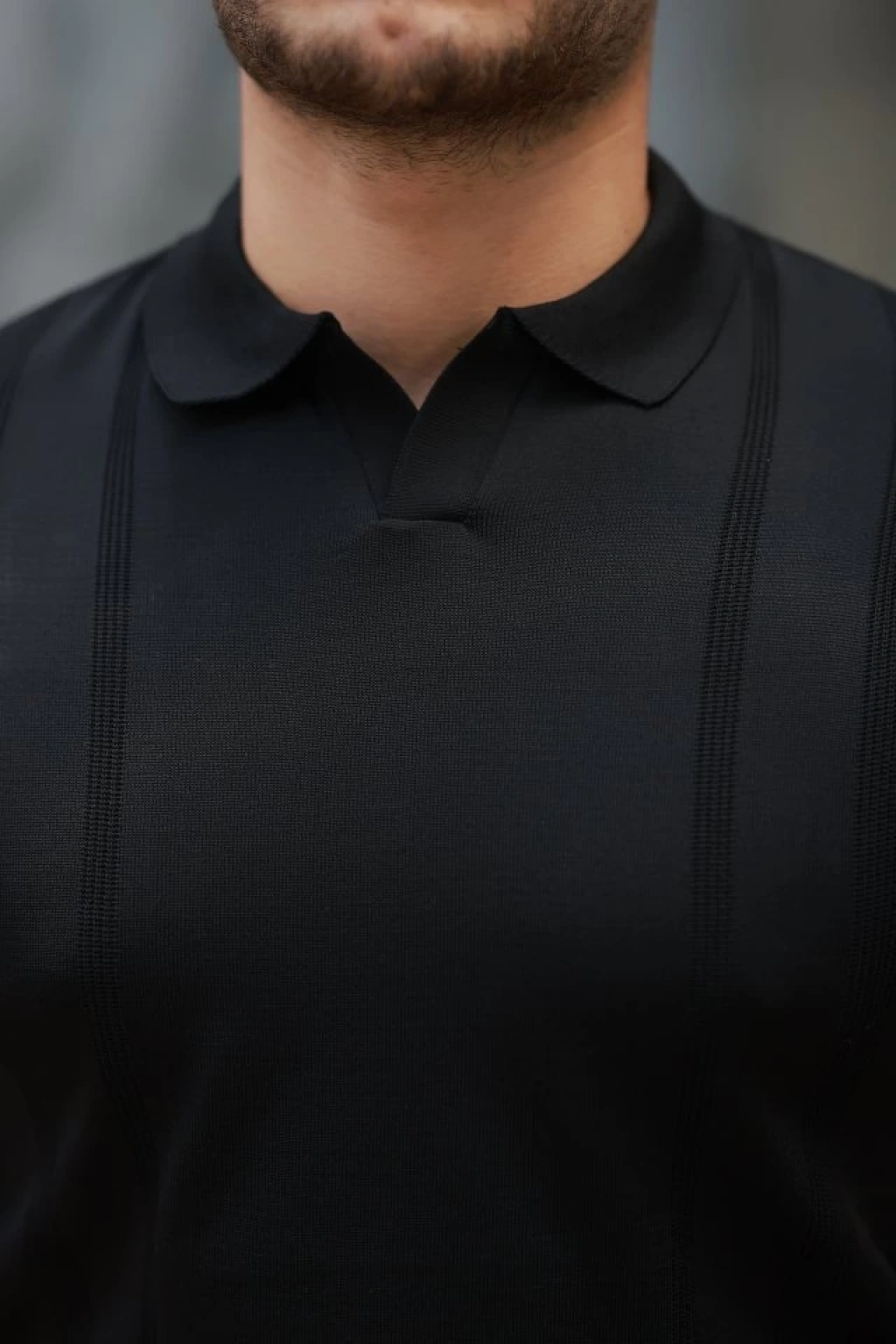 Erkek Kısa Kollu Yakalı Yakadan Düğmeli Triko Bluz