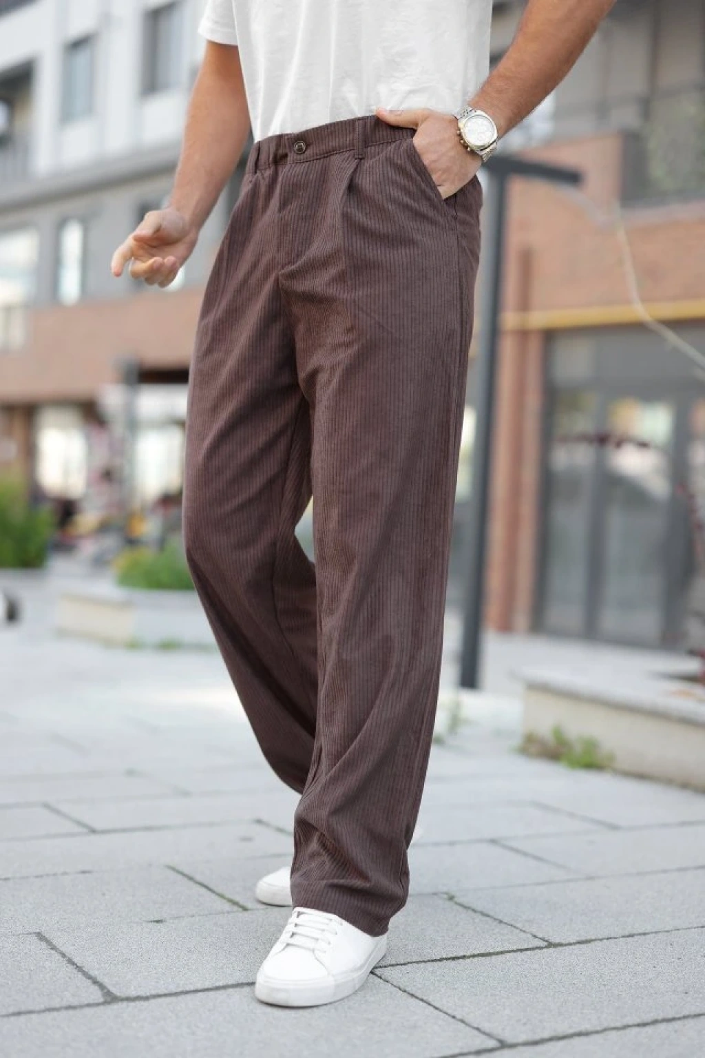 Erkek Kadife Oversize Takım – Gömlek Ve Pantolon İkili Set Füme Corduroy Şıklığı, Rahat Ve Zarif Duruş Yumuşak Dokulu Kadife Kumaş, Düğmeli Gömlek Üst Ve Lastikli Pantolon Alt Parça Ile Gün Boyu Konfor- Kiremit