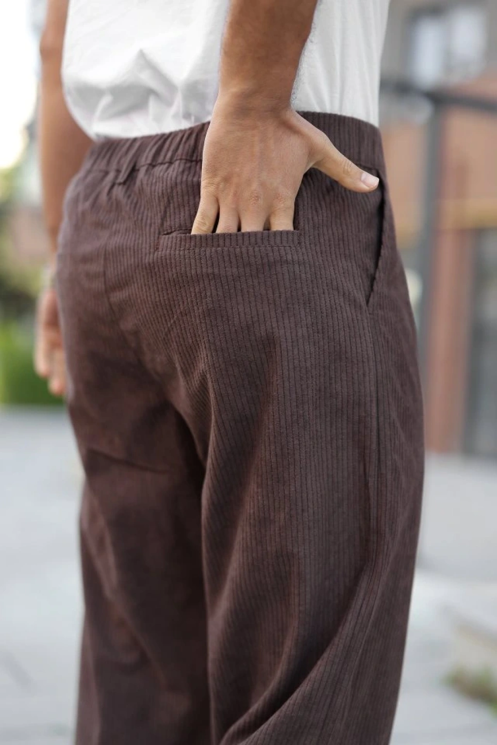Erkek Beli Lastikli Keten Rahat Pantolon