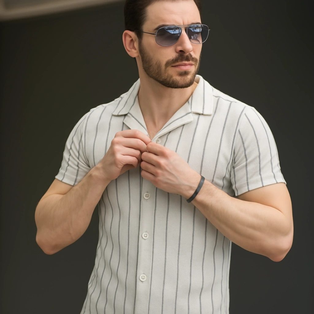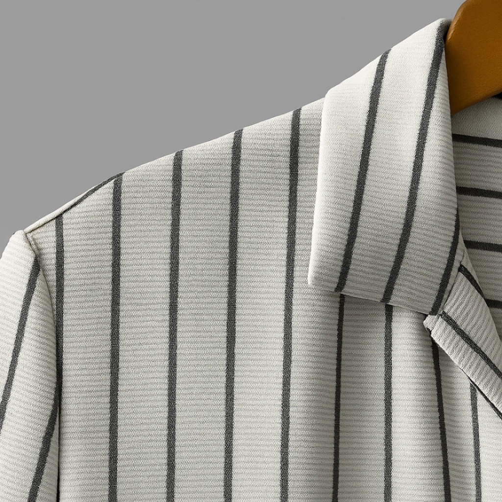Erkek Kısa Kollu Gri çizgi Desenli örme Kumaş Pamuklu Gömlek