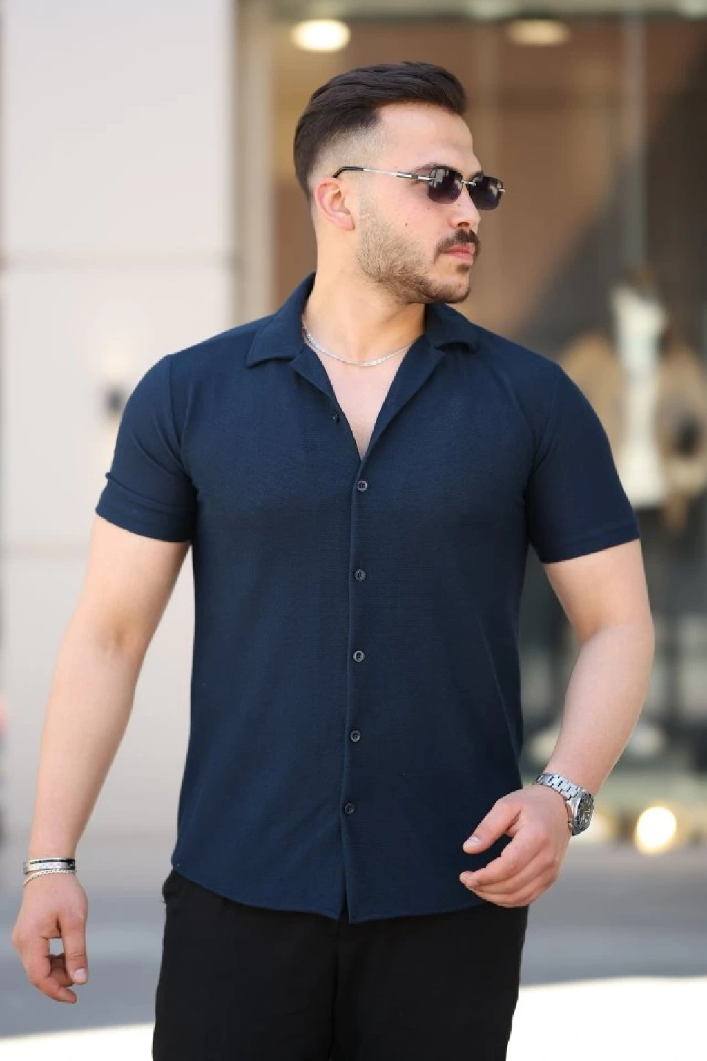 Erkek Hakim Yaka Kısa Kollu Gömlek