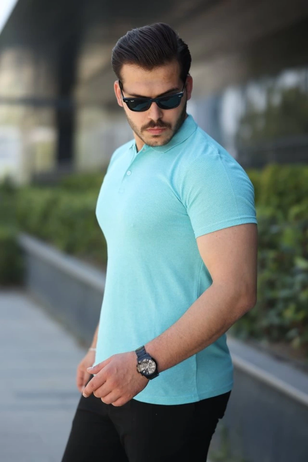 Erkek Hakim Yaka Dokuma Pamuklu Kumaş Kısa Kollu Tişört