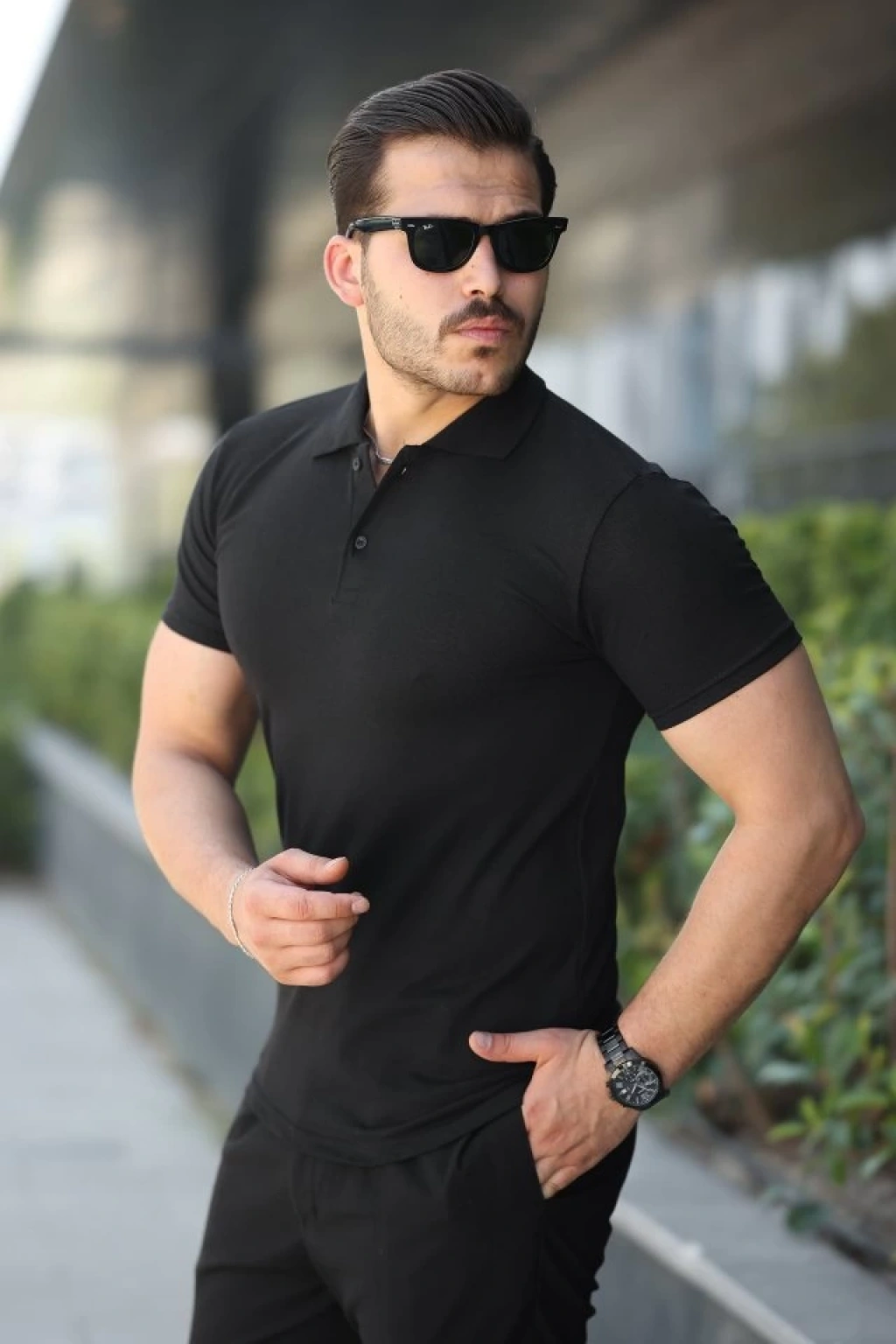 Erkek Kısa Kollu Yakalı Yakadan Düğmeli Triko Bluz