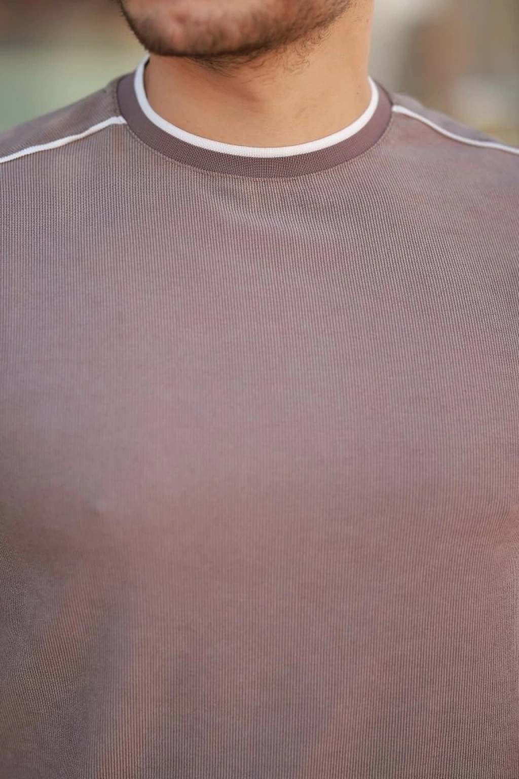 Erkek Omuzlar çizgi Detaylı Kısa Kollu T-shirt