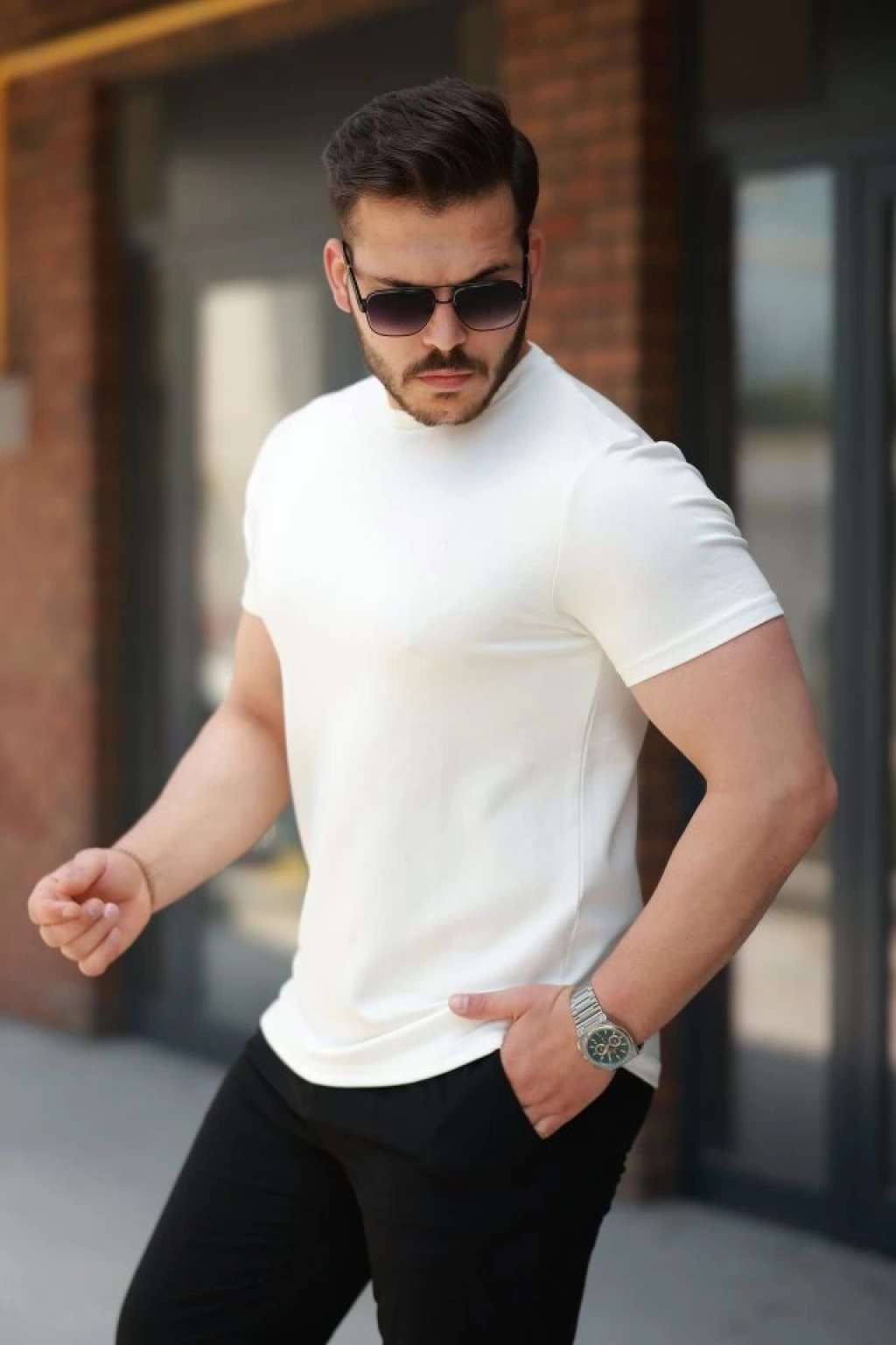 Erkek Hakim Yaka Dokuma Pamuklu Kumaş Kısa Kollu Tişört