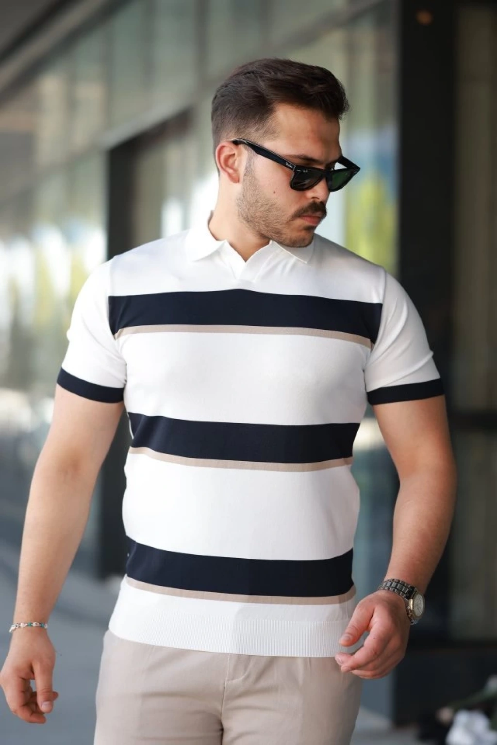 Erkek Kısa Kollu Yakalı Yakadan Düğmeli Triko Bluz