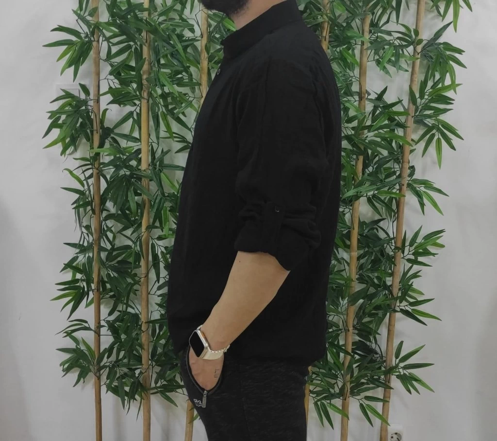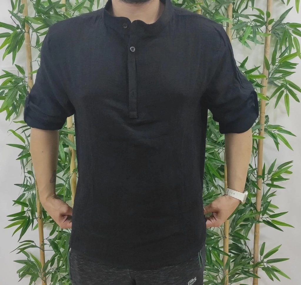Erkek Uzun Kollu Hakim Yaka Düğmeli Erkek Müslim Gömlek