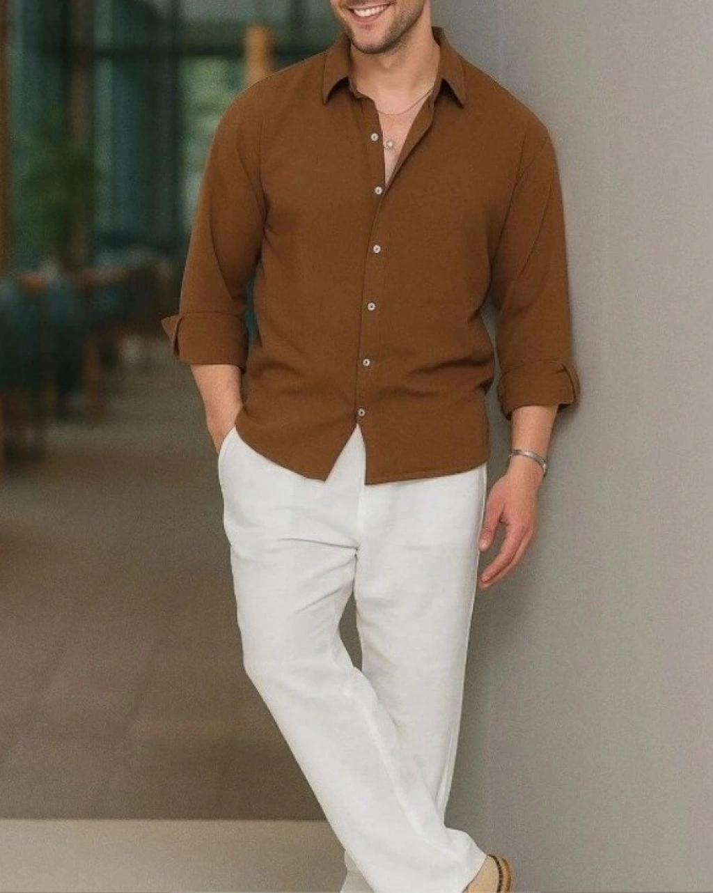 Erkek Uzun Kollu Regular Sofya Keten Gömlek