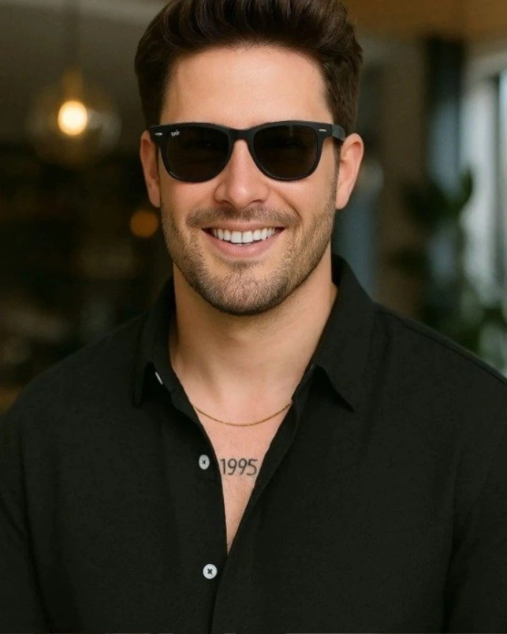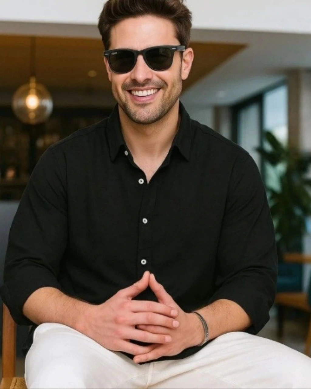 Erkek İki İplik Kumaş Dijital Baskılı Gömlek - Siyah