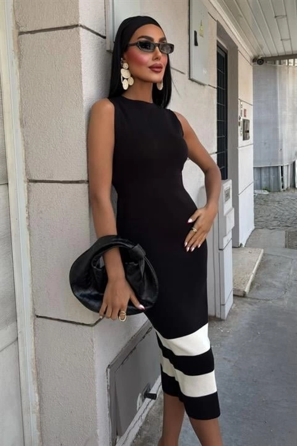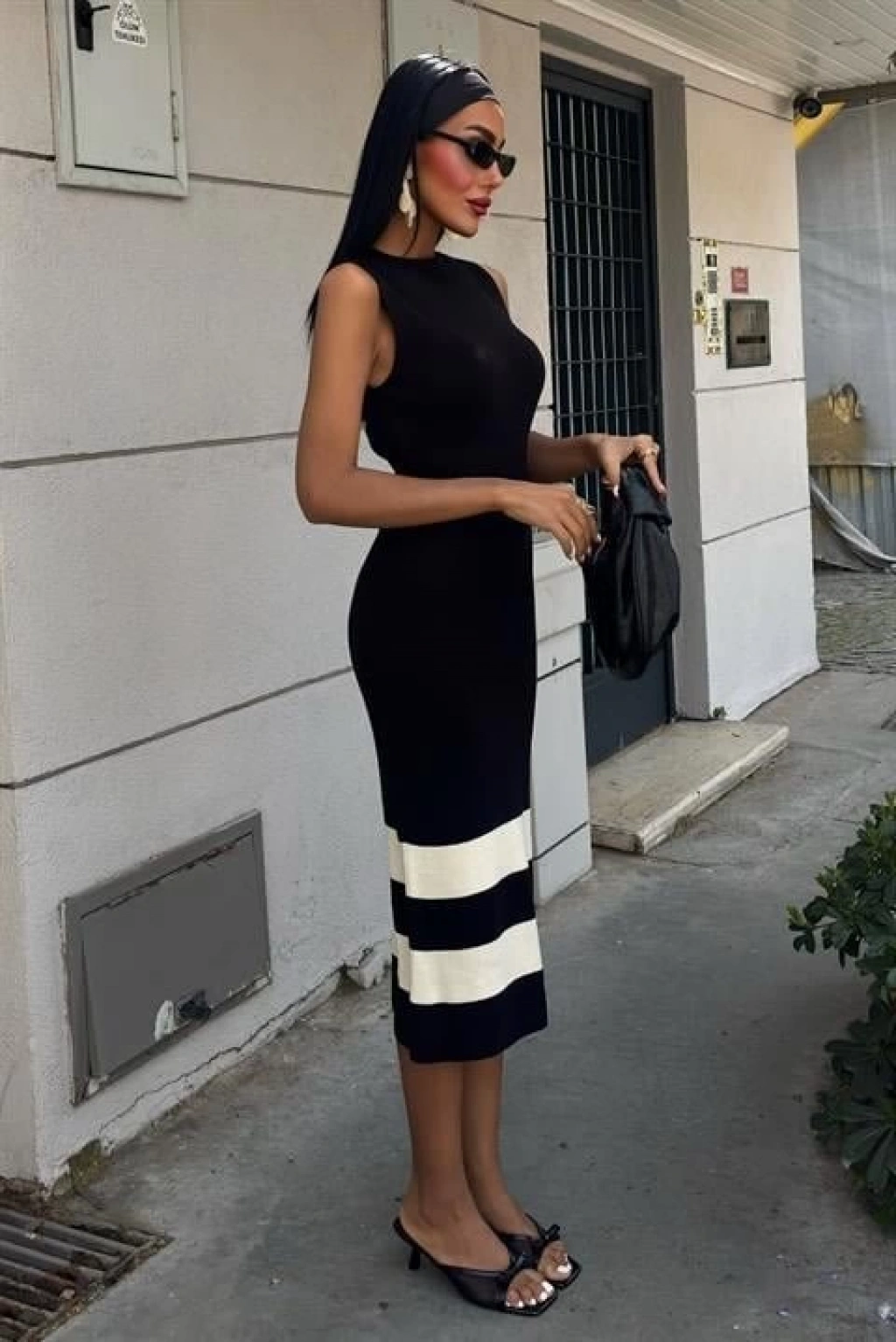 Etek Ucu Şerit Detaylı Triko Elbise 2831