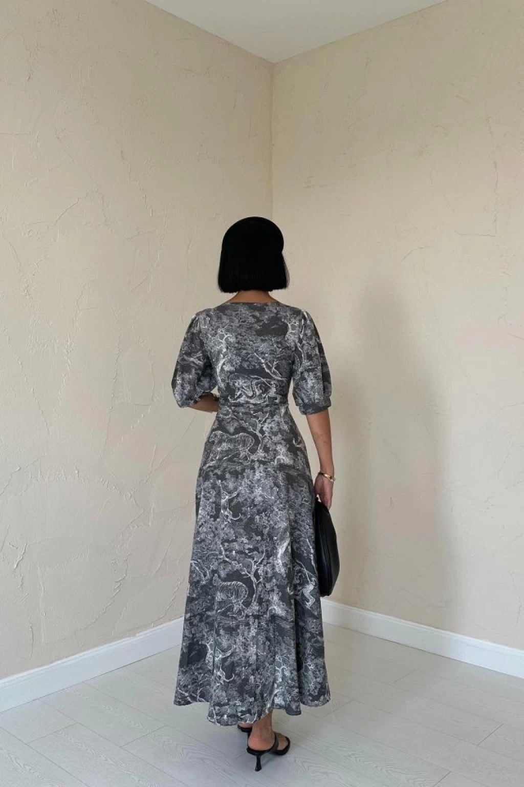 Haki Önü Düğmeli Kalp Yaka Elbise