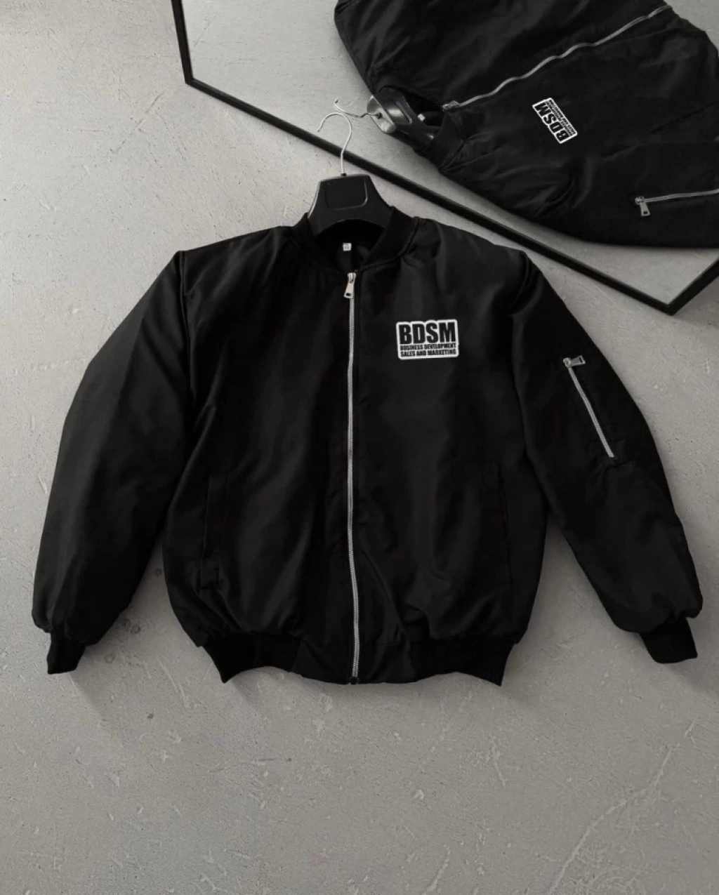 Uzun Kol Astarlı Tam Kalıp Baskılı Bomber Ceket - Siyah