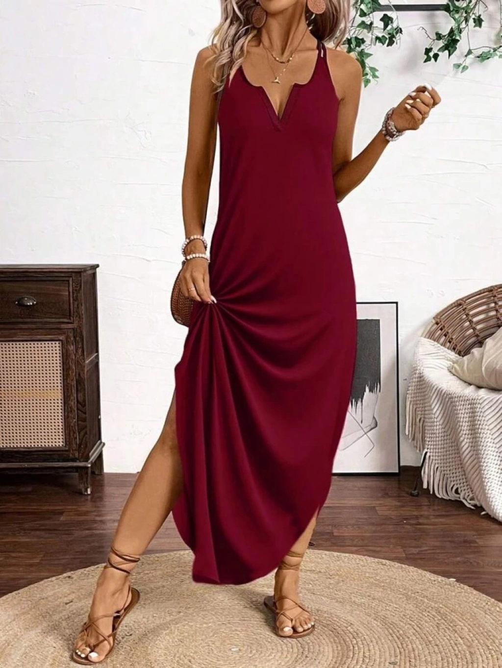 Kadın Askılı Yuvarlak Yaka Asimetrik Detaylı Viskon Elbise