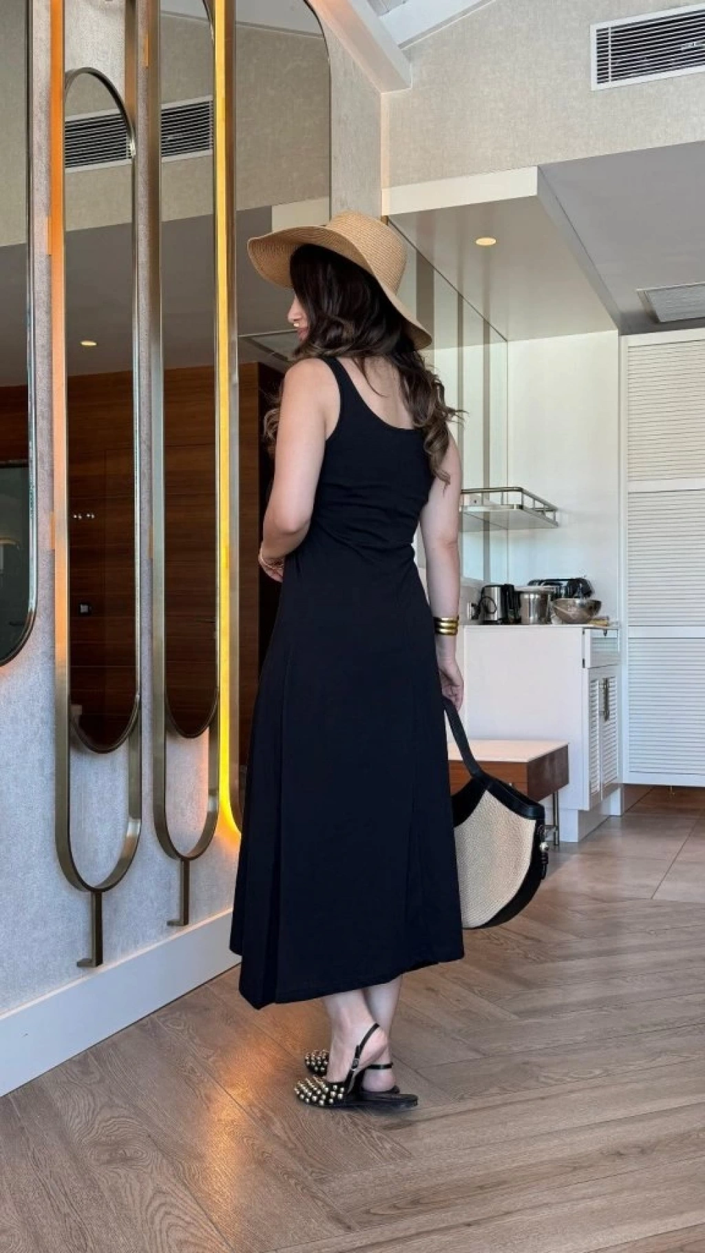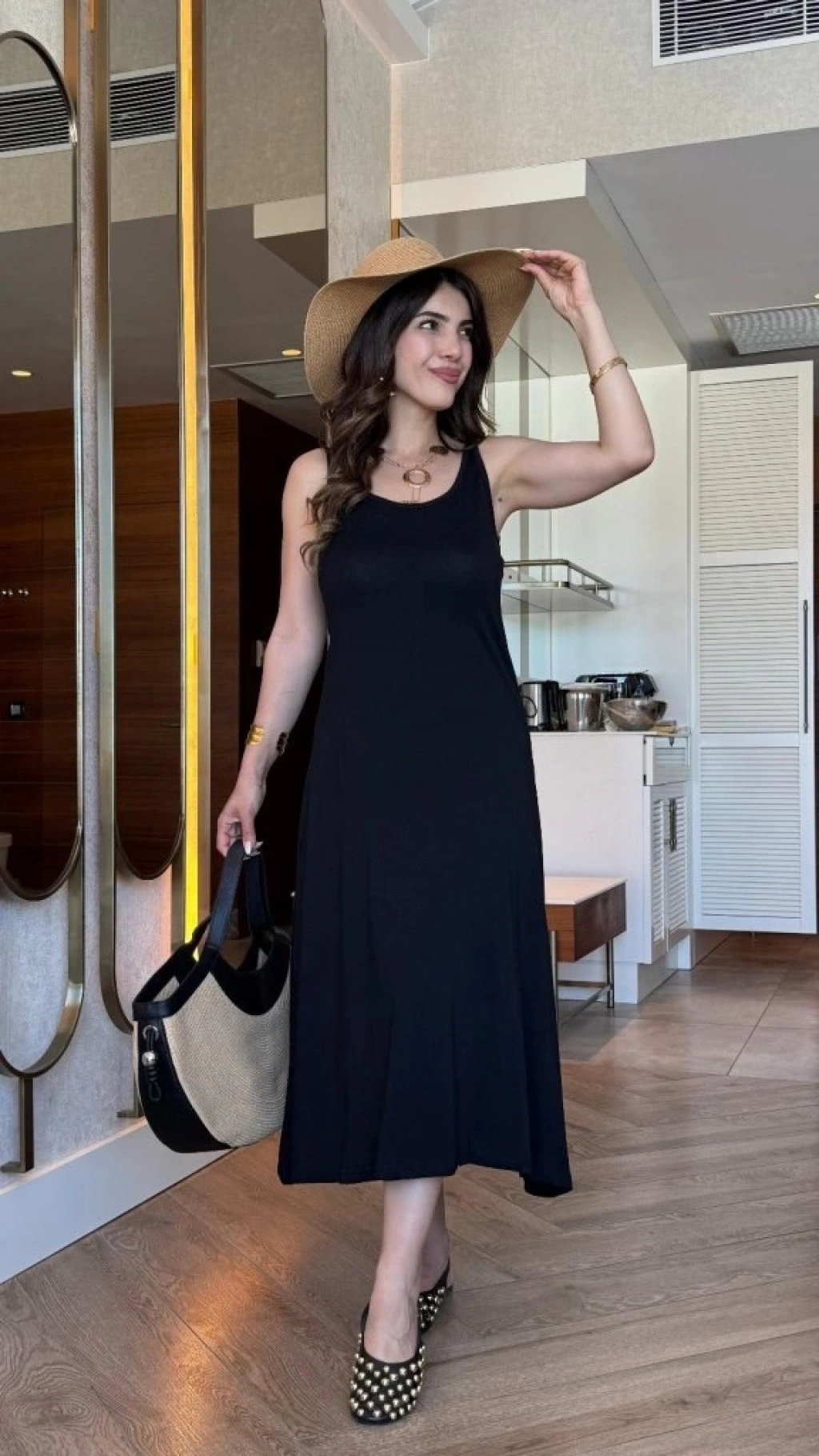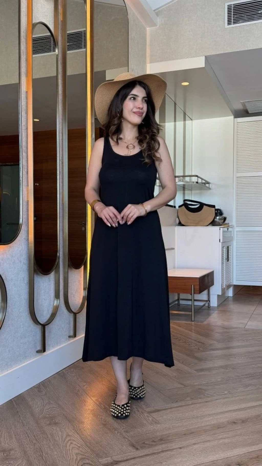 Kadın Askılı Yuvarlak Yakalı Viskon Elbise