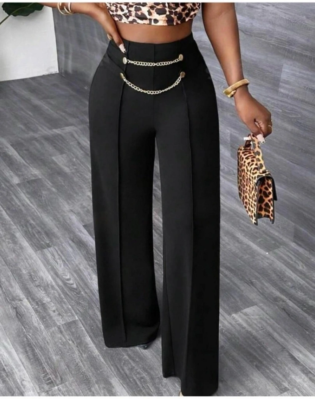 Kadın Beli Zincir Detay Ithal Krep Pantolon