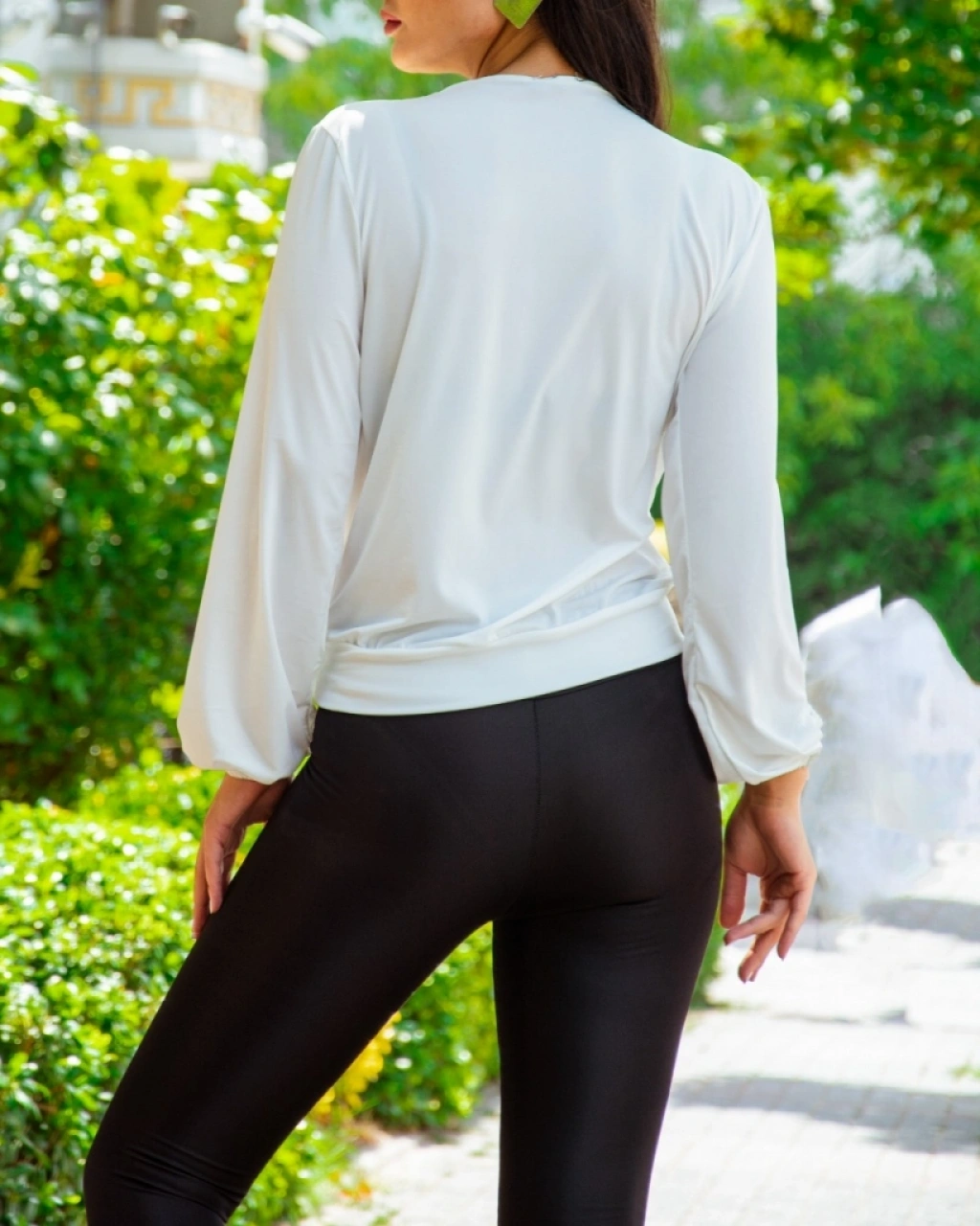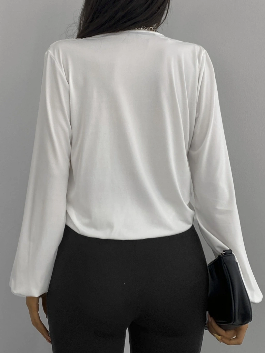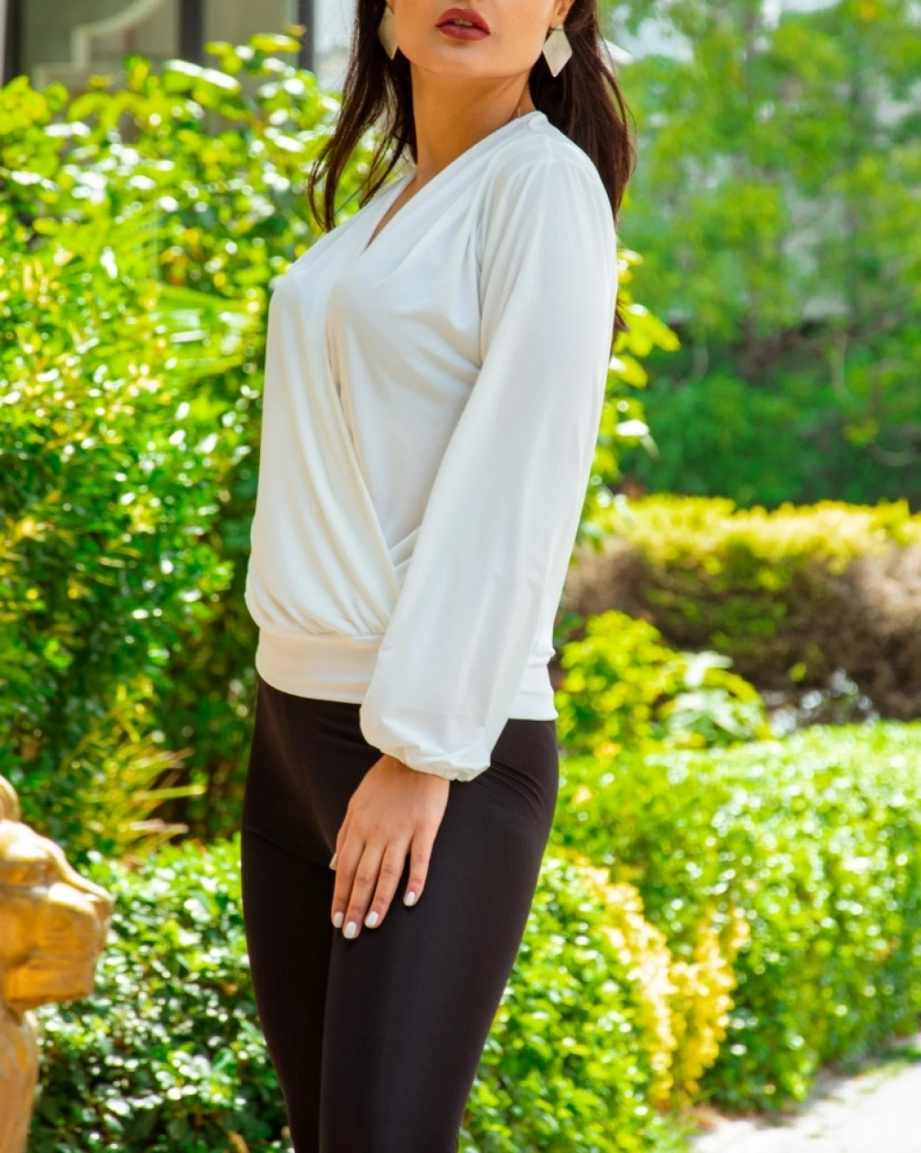 Kadın Beyaz Kruvaze Yaka Sandy Bluz