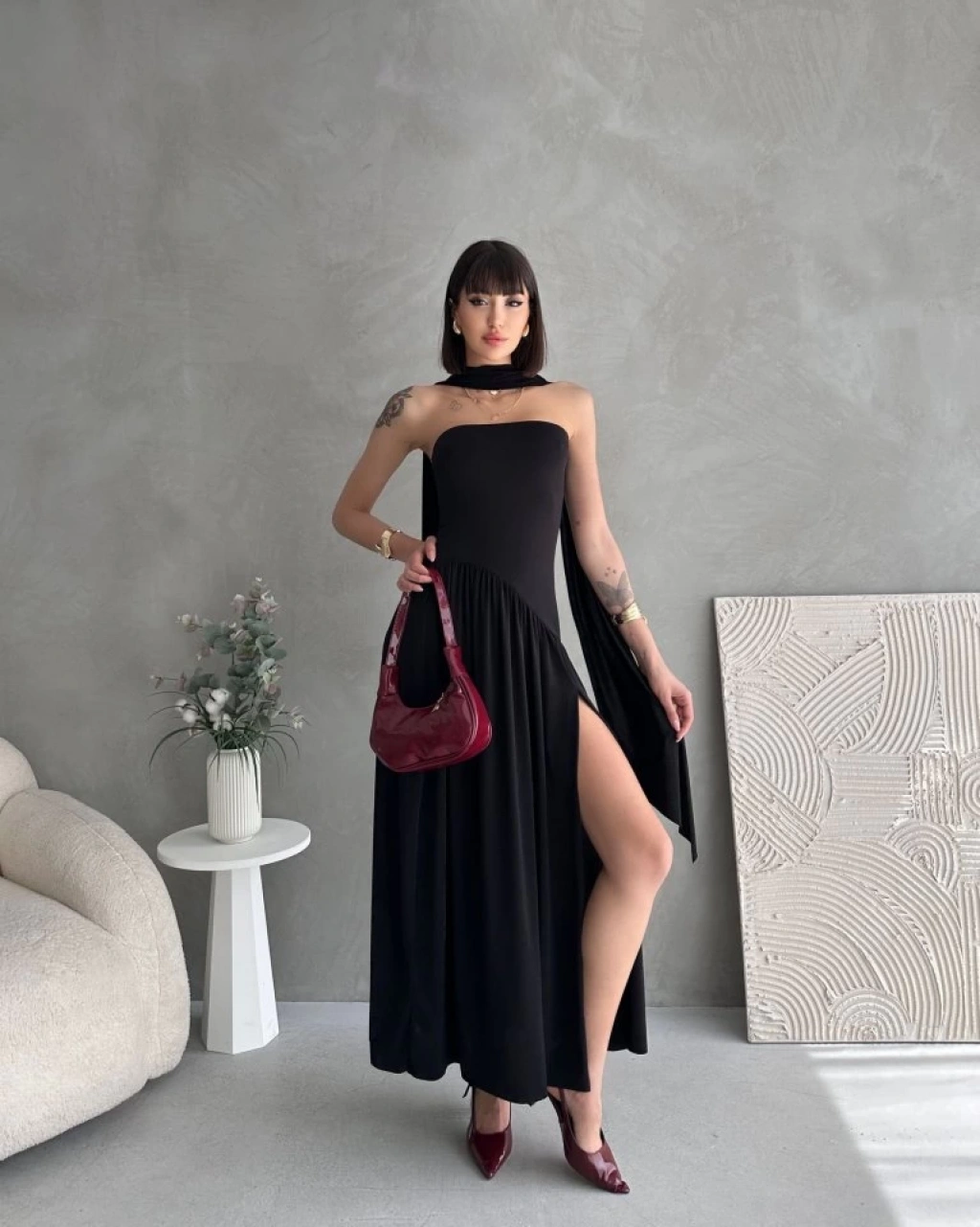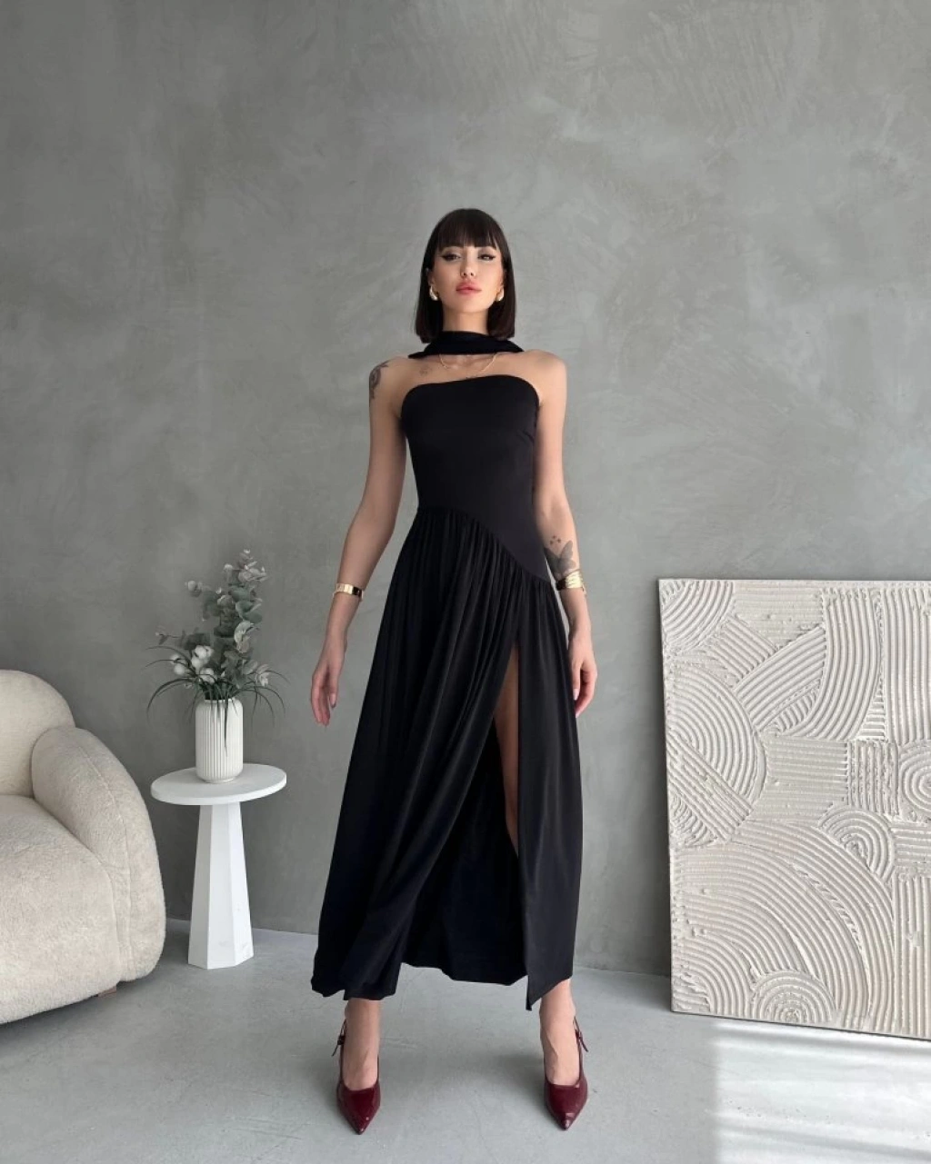 Kadın Boğaz Kolsuz Maxi Boy Kalem Elbise