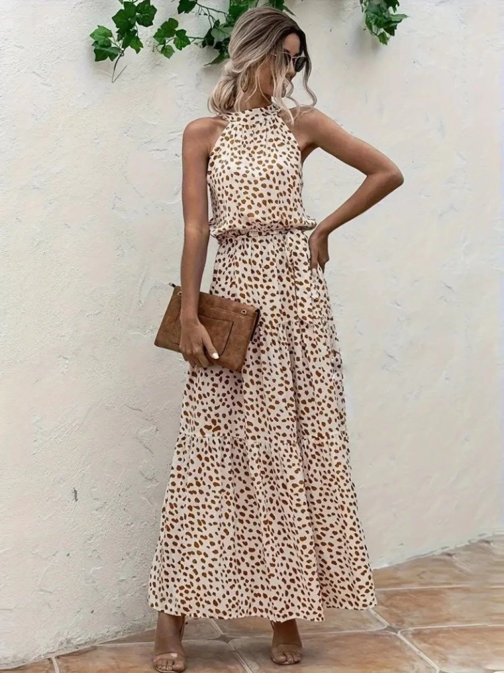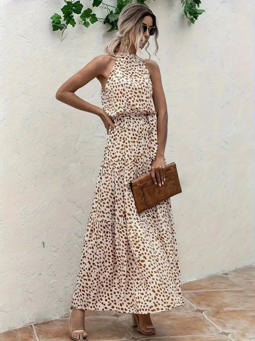 Kadın Daire Yakalı Beli Lastikli Desenli Süprem Elbise