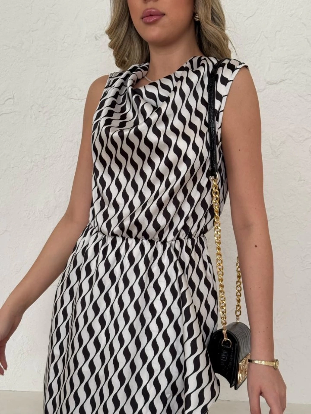 Kadın Degaje Yaka önden çapraz Detay Saten Midi Elbise