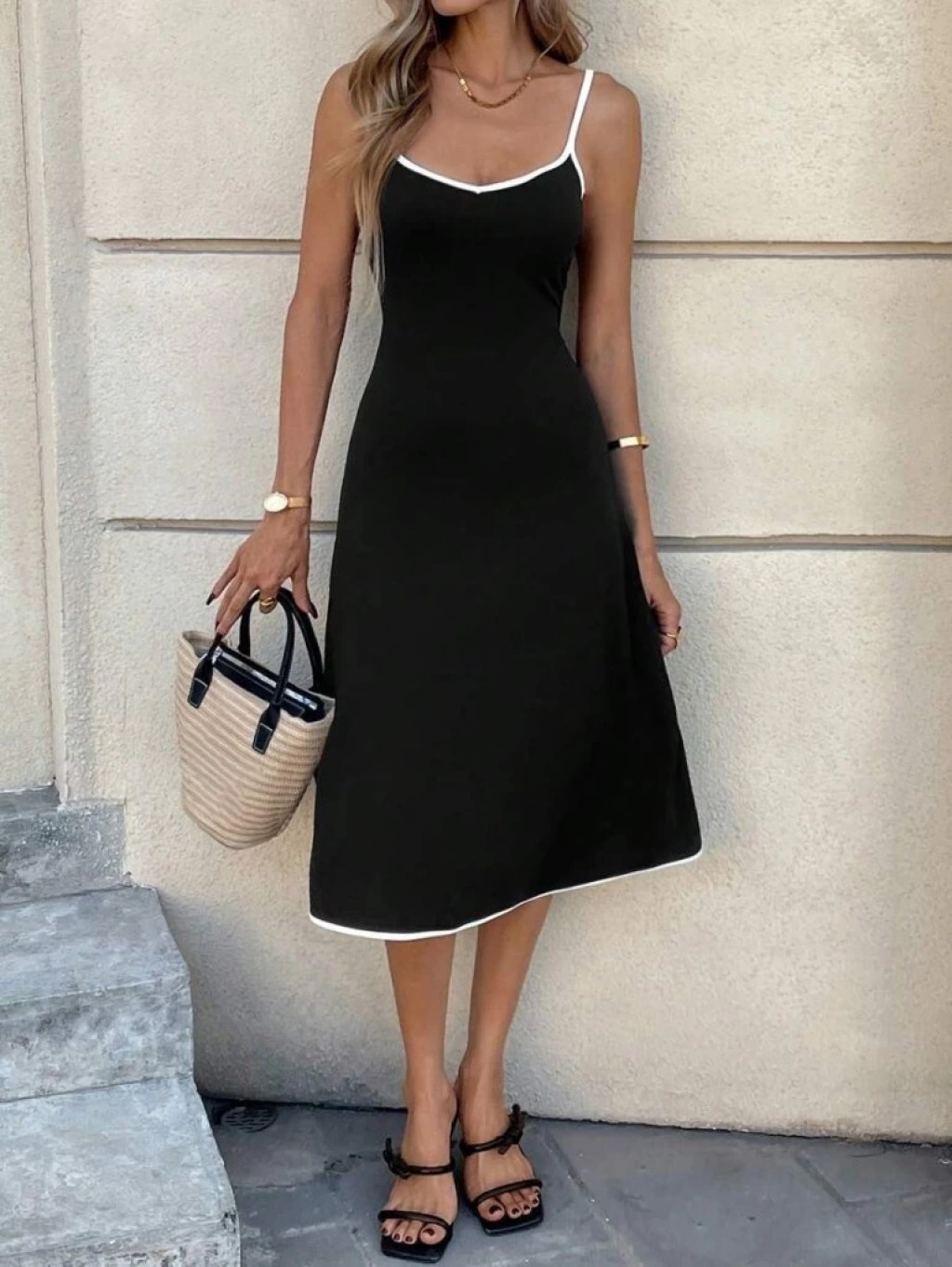 Kadın Ip Askılı Geniş V Yakalı Midi Janjan Krep Elbise