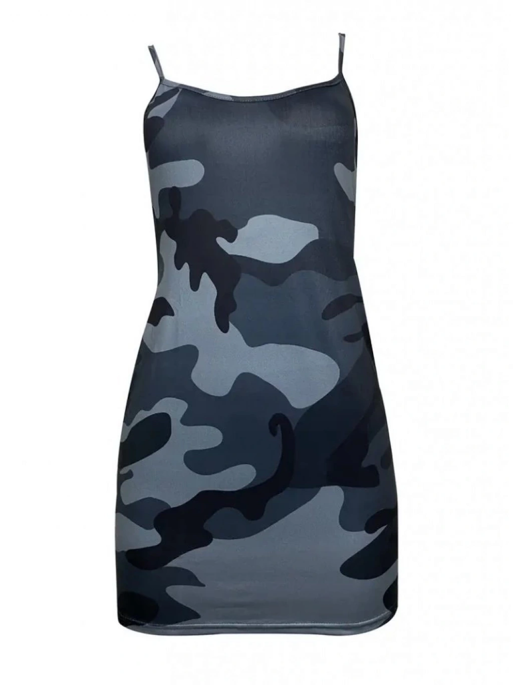Kadın Ip Askılı Kamuflaj Baskılı Viskon Elbise