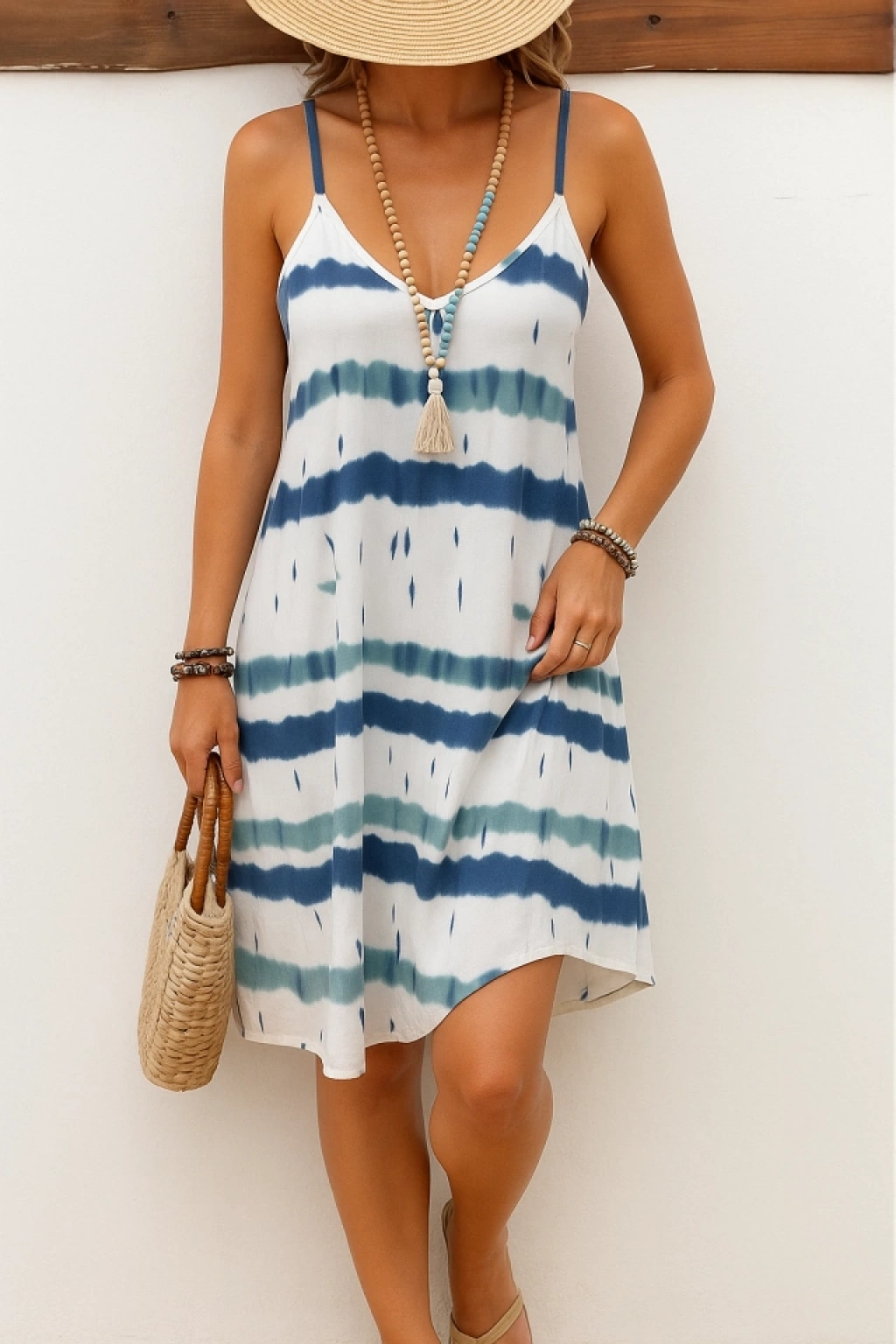 Kadın Ip Askılı V Yakalı Karışık Renkli Süprem Elbise